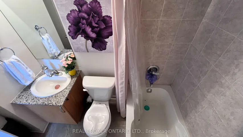 +"PublicRemarks": "Welcome to this rarely offered, beautifully designed above grade 1100 SQFT corner-unit condo townhouse, all on one spacious floor for easy living! Featuring 2 bedrooms + a generous den (ideal as a home office or 3rd bedroom), 2 full bathrooms, and private backyard space backing onto a ravine, this home checks all the boxes.The open-concept kitchen, living, and dining area is filled with natural light and finished with quartz countertops, a center island, stainless steel appliances, and a sleek backsplash. Enjoy the convenience of a ventless washer/dryer and California shutters throughout.The primary bedroom boasts a private ensuite, while the second bedroom features a custom built-in closet and large window. Bonus features include a private hallway foyer entrance, and a rare exclusive-use Ravine facing backyard perfect for relaxing or entertaining in the sun.A perfect blend of style, comfort, and privacy in a prime Warden and Finch location!"