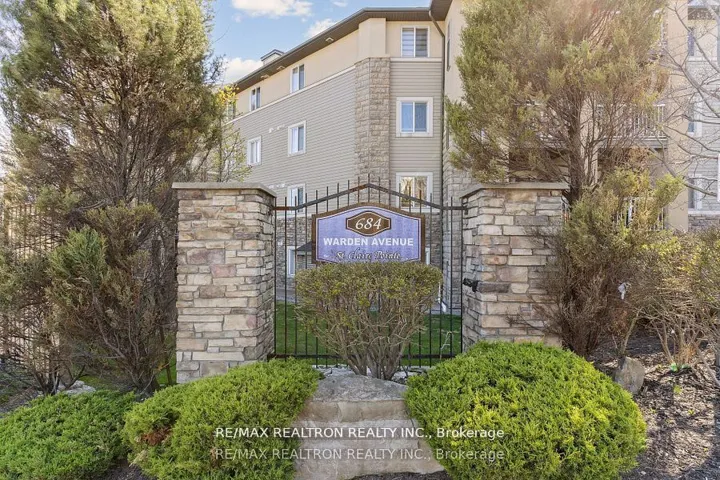 +"PublicRemarks": ""Charming and move-in ready, Unit 103 at 684 Warden Avenue offers a spacious 2+1 bedroom, 2-bathroom layout in the well-maintained St. Clair Pointe community. This ground-floor suite features an open-concept living and dining area that walks out to a private patio perfect for outdoor lounging or entertaining. The functional kitchen offers ample cabinetry and prep space. The primary bedroom includes a walk-in closet and a 4-piece ensuite, while the second bedroom and separate den provide flexibility for guests or a home office. Enjoy the convenience of ensuite laundry and two parking spaces one underground and one at ground level. Building amenities include a fitness room, party room, games room, visitor parking, and secure entry. Tucked away on a quiet cul-de-sac, this home is just minutes from Warden Subway Station, TTC routes, parks, schools, shopping, and the upcoming Eglinton LRT. Ideal for families, professionals, or downsizers, this unit offers the perfect blend of comfort, space, and location in a peaceful residential setting. Don't miss this opportunity!"