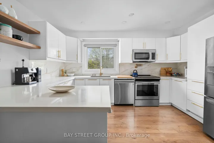 +"PublicRemarks": "Welcome to 671 Huntingwood Drive #37, a stunning townhome in a highly sought-after community, offering a rare blend of comfort, functionality and beautiful upgrades throughout. The main level features a bright and inviting living area with soaring 12-ft ceilings, a large patio door and seamless walkout to a private, fully fenced patio. Backing onto a quiet green space with no direct rear neighbours, this outdoor retreat provides privacy and extends your living space. The kitchen has been elegantly renovated with quartz countertops and upgraded cabinetry, opening into a dining area that overlooks the living room through a stylish glass railing, creating an airy and modern feel. Also on this level is a dedicated office with custom built-in storage, a rare feature offering the flexibility to work from home, study or enjoy additional living space. The upper level offers three well-sized bedrooms filled with natural light, including a comfortable primary bedroom with built-in drawers and generous storage. A full 4pc bathroom serves the upper floor, while the main level also features a rare 3pc bathroom with a glass shower. Over the years, this home has benefited from extensive improvements, including newer windows, stairs, patio door, front and storm doors, as well as an owned furnace, central AC and tankless water heater. Upgraded attic insulation further enhances efficiency and comfort. Additional upgrades such as custom built-ins and an improved dryer vent pipe reflect pride of ownership throughout. The lower level provides a versatile bonus space ideal for a home office, rec room, gym or hobby area. Maintenance fees include water, snow removal, lawn care and exterior building maintenance, supporting a low-maintenance lifestyle in a well-managed complex. Ideally located close to parks, schools, shopping, transit and with quick access to Hwy 401, this well cared for home offers exceptional space, flexibility and lasting value in a connected, established neighbourhood."