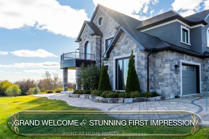 +"PublicRemarks": "A majestic Executive European-inspired estate Home set on >1.50 acres in the prestigious community of Hampton, offering over 7,300 sq.ft. of refined living space and timeless architectural presence. Crafted with elegant European detailing, refined millwork, and grand sightlines throughout, the home welcomes you with a soaring foyer that introduces a series of light-filled principal rooms designed for elevated living. The expansive gourmet kitchen serves as the heart of the home, featuring estate-level proportions, custom cabinetry, a walk-in pantry, and seamless flow to the sunroom, family room, and formal dining room-each space tailored for sophisticated entertaining.A rare residential elevator provides effortless access across all levels, rising to a distinguished second-floor executive office with custom built-ins and elevated views. This floor also hosts a private suite and additional bedrooms, including a tranquil primary retreat with a balcony, spa-inspired ensuite, and generous dressing space. The second floor extends to a spacious walkout terrace, offering a serene outdoor escape with sweeping countryside vistas.The fully finished walkout lower level enhances the home's versatility with a gym, office, bedroom, lounge areas, and a second kitchen-ideal for extended family, guests, or multi-generational living. Engineered for long-term comfort and efficiency, the property features an advanced geothermal heating and cooling system, continuous hot water, premium water purification, and professional drainage infrastructure. Outdoors, manicured grounds, stone terraces, and panoramic rural views create a private estate setting rarely found so close to urban convenience. Multiple outdoor living areas provide space for gatherings, quiet retreat, and elegant entertaining. With quick access to Hwy 407/418, conservation areas, trails, and the charm of Hampton village, this exceptional residence blends luxury, privacy, and modern comfort in a truly distinguished offering."