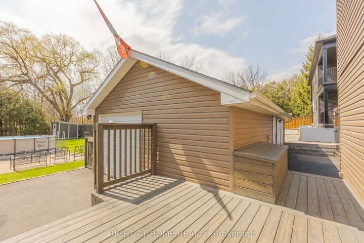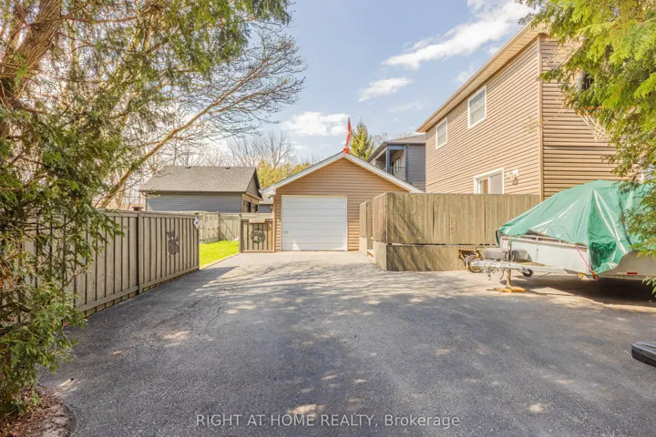+"PublicRemarks": "Private and spacious family home on a quiet street located in the heart of Old Bowmanville. This home truly offers a blend of comfort, privacy, and future potential in a wonderful neighbourhood. The property offers three separate entrances for added convenience and privacy. The main double car driveway accommodates 8 vehicles, while a second rear driveway comfortably accommodates parking for three and provides access to a 1.5 car detached garage equipped with a 220 Volt outlet - perfect for any hobbyist or electric vehicle owner. You'll love that the backyard backs directly onto green space that leads to the scenic Bowmanville Creek, and you're just steps from downtown, shopping, schools, and parks. Commuters will appreciate being only minutes from Highway 401. The home boasts approximately 1900 square feet of living space, including a two-storey addition completed in 1998. The main floor features a huge laundry room, a living room that opens to a deck, a main-floor office, a powder room, a spacious eat-in kitchen updated in 2022, a mudroom, and an additional versatile bedroom currently used as a gym and media room. This space could easily transition into a fourth bedroom if desired. Upstairs, you'll find three generous bedrooms and an updated four-piece bathroom. Each bedroom has its own A/C unit to personalize comfort levels in the summer. Most windows and exterior doors were updated in 1998, with vinyl siding replaced in 1999. There's also a side door that provides direct access to the basement and a full crawl space area under the addition. The updated gas furnace (2018) and hot water tank (2017) ensure comfort and efficiency. Step outside to discover a backyard oasis surrounded by mature cedars, featuring a stone patio, 15' pool, 12' x 8' protected garden, and a newer 12' x 8' shed. For those interested in development opportunities, there's also potential to add additional units in the backyard by utilizing the rear driveway."
