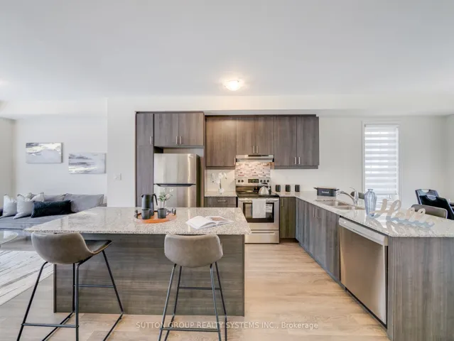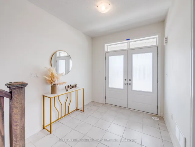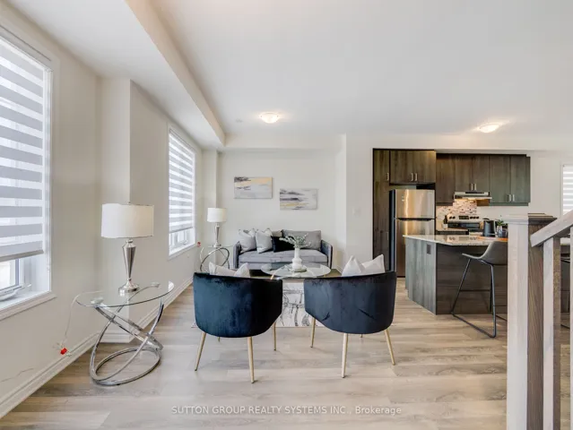 +"PublicRemarks": "Stunning Executive End-Unit Freehold Townhome | Feels Like a Semi-Detached. Discover this beautifully upgraded 3-storey end-unit townhome, built with all brick and stone, located on a peaceful street in the desirable community of Rural Pickering. With its double-car garage and generous layout, this home offers the space and feel of a semi-detached property. A grand double-door entrance welcomes you into a bright, airy home with 4 well-sized bedrooms and 4 bathrooms. The ground-level bedroom includes a private 3-piece ensuite-ideal for extended family, guests, a nanny suite, or a home office setup. The main living level showcases stylish oak staircases with wood spindles, leading to an open-concept layout combining the living, dining, and family areas. Enjoy upgraded laminate flooring throughout, complemented by smooth 9-ft ceilings and modern 8-ft doors, creating a clean and contemporary atmosphere. The kitchen is thoughtfully upgraded with extended cabinetry, granite countertops, and a large island with a raised breakfast bar. Step out to the balcony for fresh air and outdoor enjoyment. The third level features a spacious primary bedroom with a walk-in closet, a sleek glass-enclosed shower, and access to a private balcony. Convenient laundry is also located on this floor. Additional features include: Energy-efficient Ecobee thermostat, 9-ft ceilings on ground and main floors, Mirrored closet doors, Direct garage access into the home, Spacious double car garage. This home combines modern upgrades, functional design, and an excellent location, perfect for families looking for comfort and style. Listing photos are from a previous listing."