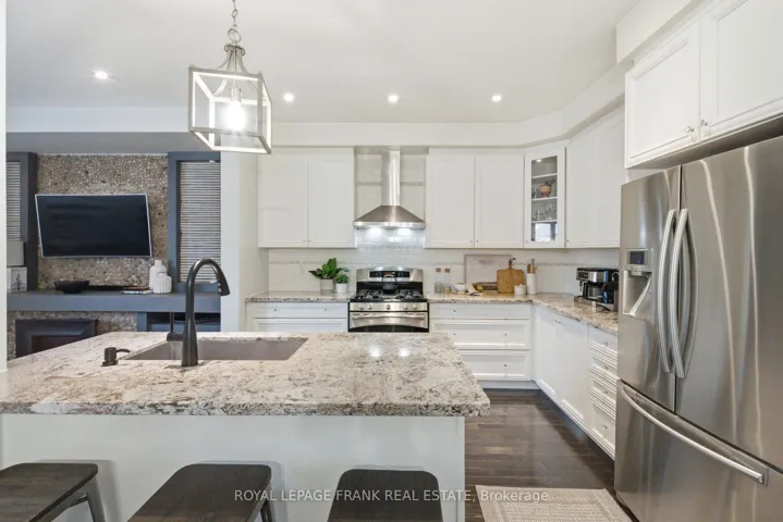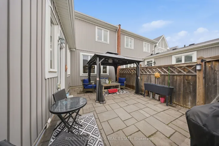 +"PublicRemarks": "Exceptional Tribute-built "Windmill" model townhome in the highly sought after community of Brooklin. Offering nearly 2100 sq.ft. of above grade living space plus a fully finished basement, this bright and spacious home is designed for both comfort and entertaining. The open concept main floor features 9 ft ceilings, hardwood flooring, and a stunning upgraded white kitchen complete with granite countertops, ceramic tile backsplash, and a large breakfast/eating area. The expansive family room is ideal for hosting, while the bay window in the living room adds charm and natural light. A generously sized laundry room with breezeway access to the attached garage, a convenient powder room, and a walkout to a private patio with gazebo complete the main level. Upstairs, the extra large primary bedroom boasts a beautiful bay window, walk-in closet and a 4 piece ensuite and another two large bedrooms. Additional highlights include hardwood staircase, custom fireplaces on both main and lower levels, and a thoughtfully finished basement providing added living space. Affordable, condo fees cover water, snow removal, grass cutting, and common elements for easy, low maintenance living. Ideally located close to top rated schools, downtown Brooklin, restaurants, shopping, transit and Highway 407."