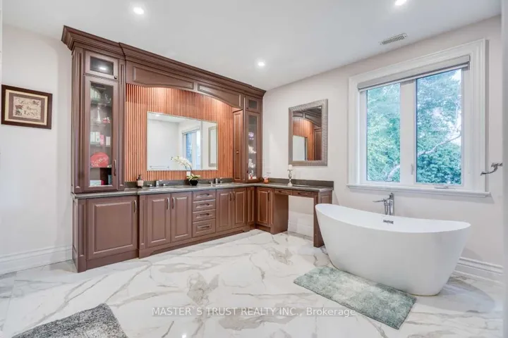 +"PublicRemarks": "This remarkable, pie-shaped lot, custom-built home resides within a quiet cul-de-sac located in the scenic and elegant Unionville community. It is conveniently near the top ranked, William Berzy Elementary School and Unionville HS District! Ample space is produced by the 11ft ceiling on the main floor, allowing tons of natural lighting into the gorgeous atmosphere. The exquisite main kitchen features high-end marble counters and expansive island complemented by the famous Bosch appliances and second kitchen enclosed behind the main, ready at your creative disposal. The family room is separated by the two-way fireplace. Upstairs highlights the 9 ft ceiling and 5 bedrooms, all including ensuite. The breathtaking primary bedroom incorporates steam applications into the shower allowing for perfect relaxation. The fully finished, walk-up basement also has an outstanding 9 ft ceiling and heated floors, leading to the home theatre, a 3-piece ensuite with a sauna room, and an additional bedroom with another 3-piece ensuite. The spacious tandem 3 car garage with the unbelievable room in the driveway for 6 more cars ensures that space is never an issue! Please refer to the "Home Features Sheet" in the Attachments for even more detailed features included. Welcome to the lovely 7 Trumpour Court."