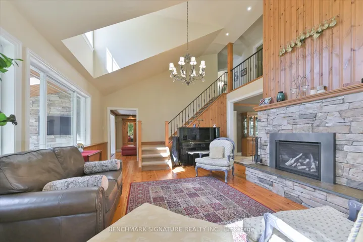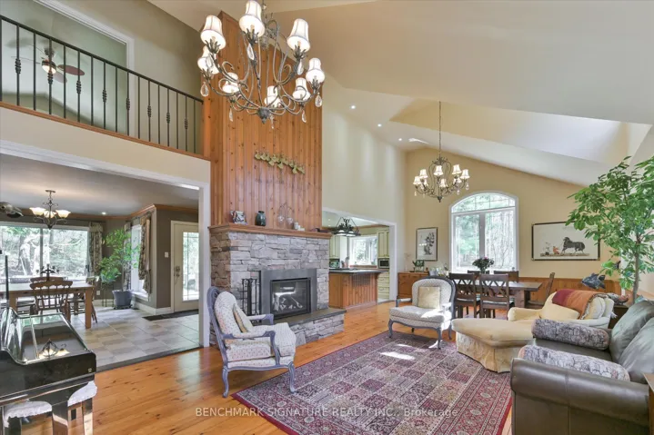 +"PublicRemarks": "Welcome to this exceptional 5-acre property in King City, tucked into the scenic and protected landscape of the Oak Ridges Moraine. This beautiful property offers a rare chance to live surrounded by nature without sacrificing refined comfort. The home blends custom architecture with peaceful seclusion, an ideal balance of sophistication and serenity. Inside, the space opens up to a dramatic 18-foot ceiling in the great room, where natural light pours in through oversized windows, offering panoramic views of the surrounding greenery. The open layout connects to a Muskoka room, multiple fireplaces, and a series of decks, porches, and patios, inviting you to enjoy the outdoors in every season. The primary suite feels like a private retreat, complete with a sitting room perfect for quiet mornings or an evening wind-down. Whether hosting friends or simply relaxing at home, the thoughtful design makes every space both functional and welcoming. Step outside and explore landscaped gardens, forest trails, and rolling terrain that lead through an ecosystem unique to the Oak Ridges Moraine. While it may feel like a true country escape, you're less than 10 minutes from Hwy 400, King City GO Station, and excellent schools offering a rare mix of tranquility and convenience. This isnt just a home, its a lasting investment in lifestyle, landscape, and legacy. Furnace (2020), Water Heater (2020), Water Purifier (2020), Roof (2020), Fibre Optic Internet."