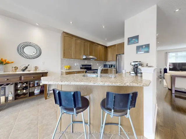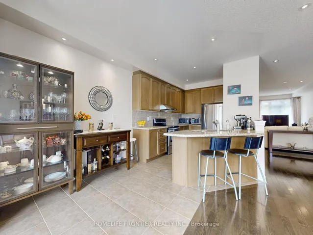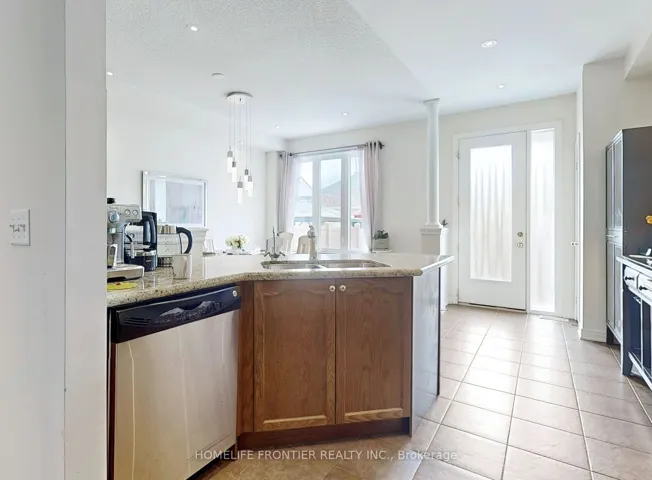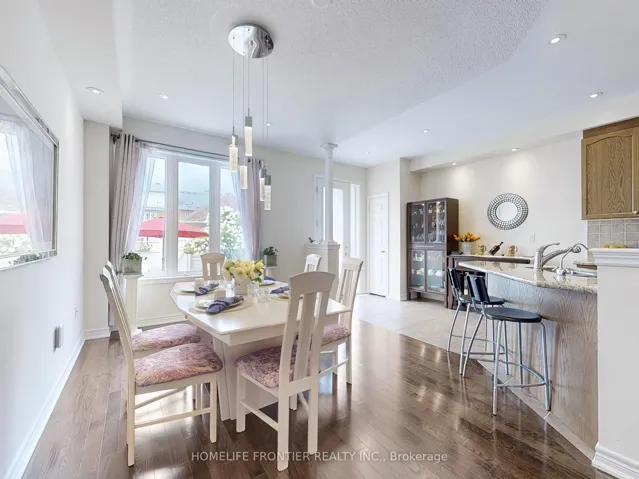 +"PublicRemarks": "Nestled in the highly sought-after Cornell community, this immaculately maintained townhouse is filled with natural light & is located on a quiet street. It features a soaring 9-foot ceiling on main floor with pot lights, the open concept spacious living and dining area provide an ideal space for entertaining, and the versatile bonus space is ideal as a sitting/work/play area. The kitchen is adorned with sleek stone counter top, upgraded tall upper kitchen cabinets, stylish backsplash, water filtering system & stainless steel appliances. The bright eat-in area walk out to the professionally landscaped and fully interlocked backyard which is perfect for outdoor entertaining. The 3 bedrooms upstairs are generously sized, with large windows, closets and hardwood floor. $$$$$ spent on builder upgrades & updates - gleaming hardwood floor throughout, hardwood stairs from basement landing all the way to second floor, metal pickets, enlarged basement windows, heat pump (2023), roof shingles (2023), aluminum capped garage door frame and back door frame (2023), caulking around all windows (2023), water softener, maintenance free fencing in backyard, plywood subfloor and more. Its unbeatable location offers unparalleled convenience of daily living - walk to Viva on Ninth Line, minutes to Cornell community centre & library, Stouffville Hospital, highway 407, Cornell bus terminal, Go stations, supermarkets, stores, and the area is surrounded by parks. Top-rated schools in the area - Bill Hogarth S.S., St Joseph C.S. Don't miss your opportunity to own this gorgeous home, its thoughtfully designed layout showcases modern comfort and timeless appeal!"