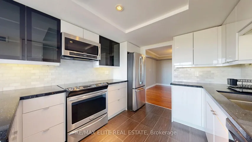 +"PublicRemarks": "Welcome to one of the most coveted corner and Largest units in the building with Oversized Terrace & Stunning Views. Perched on the 14th floor with panoramic, unobstructed views and an expansive private terrace perfect for outdoor dining, entertaining, or simply relaxing in the open air. This beautifully maintained 3-bedroom, 2-bathroom executive offers Sun-filled open-concept living/dining space with hardwood floors throughout. Renovated kitchen with granite countertops, stainless steel appliances, and a cozy breakfast area. Spacious primary bedroom with two walk-in closets and a luxurious 5-piece ensuite featuring a freestanding tub and glass shower. All bedroom closets feature built-in organizers for maximum storage. Large ensuite laundry room with additional storage space. Bright and versatile third bedroom ideal for guests, a home office, or a den. Steps to Yonge Street for premium shopping, dining, and amenities. Easy access to transit walk to TTC subway, bus routes, and GO transit. Nearby parks, schools, cafés, and cultural spots"
