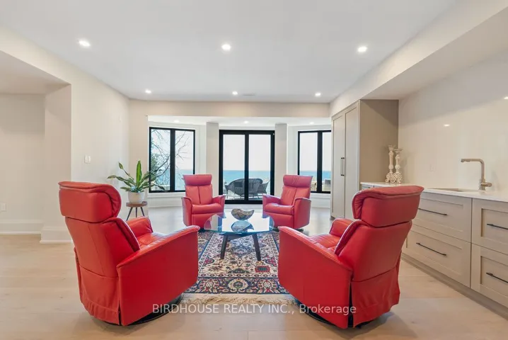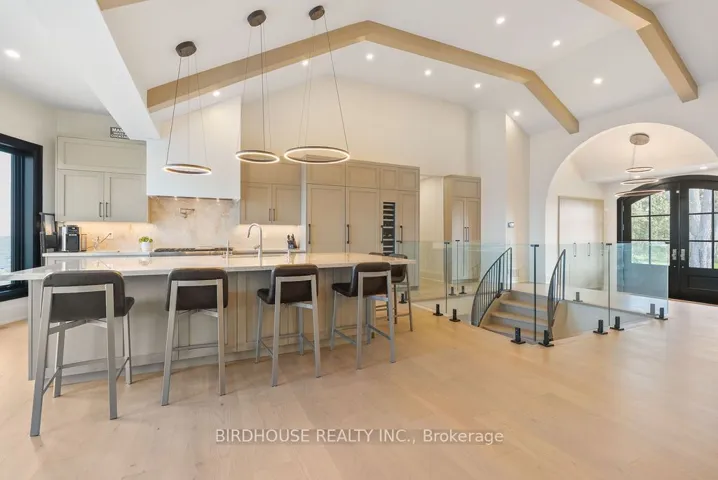 +"PublicRemarks": "Exquisite waterfront estate with 174 ft of frontage on Lake Simcoe. Stunning panoramic sunset views! Masterfully renovated in 2023, this French country-style bungalow boasts over 6000 sq ft of finished living space, 5 bedrooms, 6 bathrooms & an oversized attached garage. Designer interior finishes such as custom oak swept staircase & oak beams, complete Thermador appliance package, gorgeous amberwood exterior doors, marble kitchen countertops & backsplash, Napa Valley kitchen & bath cabinets plus white oak engineered hardwood flooring throughout! The exterior landscaping is expansive & thoughtful including a wrought iron security entry gate & outdoor LED lighting. Complete privacy & year-round living."