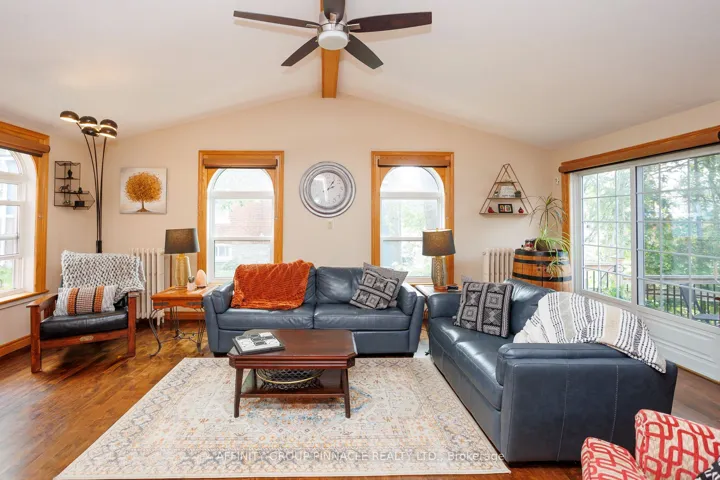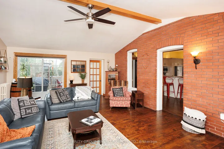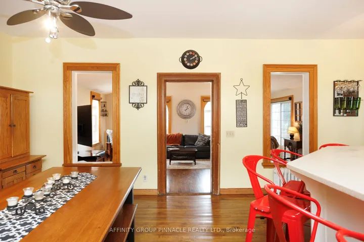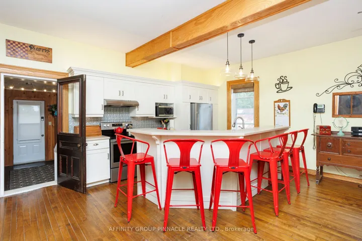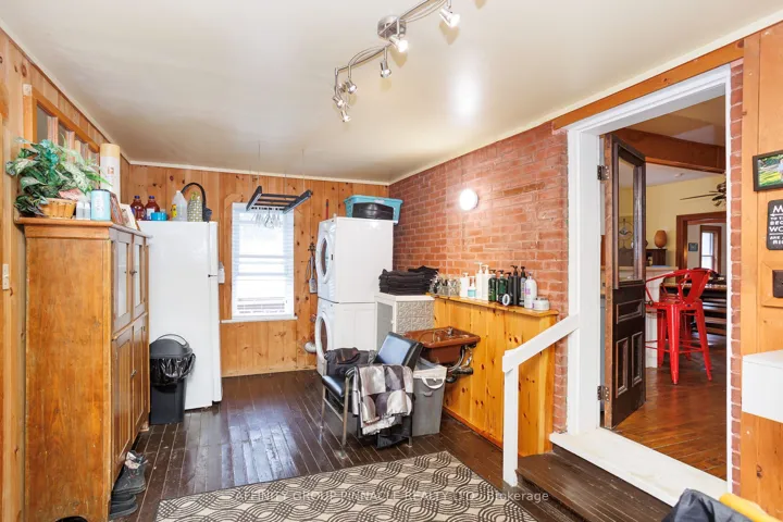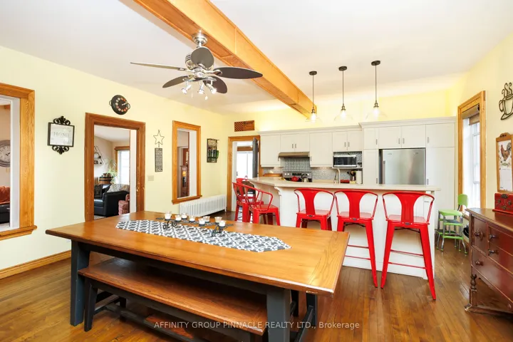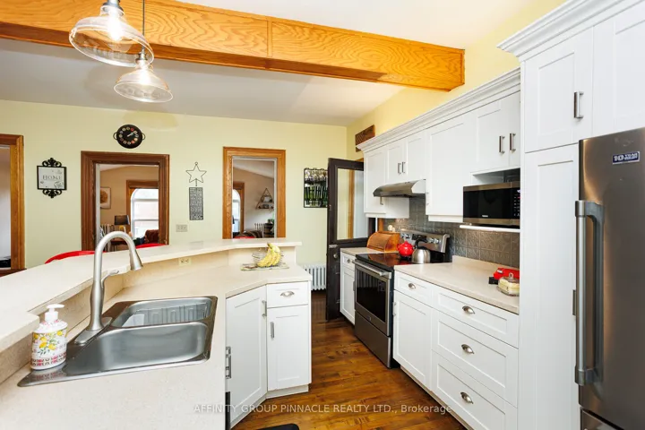 +"PublicRemarks": "This inviting century home offers three bedrooms and one and a half bathrooms, including a convenient main floor bedroom and a primary suite equipped with a private two-piece ensuite. The property features a durable metal roof and classic brick construction, ensuring lasting curb appeal and easy maintenance. Set on an expansive double L-Shaped Lot with two driveways accessing two roads, the home provides ample space for outdoor activities, gardening, or future expansion. During the warmer months, enjoy the above-ground pool and private deck, perfect for entertaining or relaxing in the sun. Inside, you'll find a large, open-concept kitchen designed for family gatherings and culinary creativity. The spacious main floor includes both a living room and a family room, offering plenty of room for relaxation and hosting guests. This remarkable property blends timeless character with modern comforts, presenting a rare opportunity to own a home with generous living space and exceptional outdoor amenities. Walking distance to town."