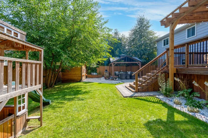 +"PublicRemarks": "RARE COMBINATION OF A SPECTACULAR BACKYARD, COMPLIMENTED BY A BEAUTIFUL INTERIOR, AT A REASONABLE PRICE..........This 4 bdrm, 2 bath home in a quiet, mature area of Alliston is sure to delight both inside and out..........You won't find many backyards nicer than this one: Fully fenced (new), full privacy with several mature trees, new patio, new covered deck, outdoor kitchen, heavy duty gazebo, outdoor fireplace, plug n' play hot tub, and nice wood shed, it really is a 10/10..........Nicely landscaped front yard with new patio, new front door, and new garage bay door create a nice curb appeal..........4 car driveway with no sidewalk..........The interior has been completely renovated with upscale modern finishes throughout..........Open concept living/kitchen area with electric fireplace featuring stone surround, offers a bright, spacious area for day-to-day living..........Upgraded kitchen with quartz counter, SS appliances, and island walks out to back deck..........4 bdrms, plus 5 pc bath in upper level..........Bonus dining/family room with additional walk-out to backyard..........Basement has large finished rec room with 2 big windows, perfect for kids play area..........Entire home is carpet free and all above grade floors are hardwood..........New roof 2024, furnace 2019, windows updated (age unknown), Inside garage access..........Short walk to schools and park..........Click "view listing on realtor website" for more info."