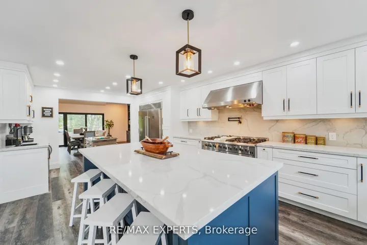 +"PublicRemarks": "Welcome to this stunning 5 bed, 3.5 bath luxury oasis in Alliston, showcasing over 4,200 sq ft of beautifully designed living space. From the newly paved driveway and elegant interlocking stone steps to the impeccable interior finishes, every detail of this home exudes quality. Inside, you're welcomed by natural light, striking feature walls, pot lights, and skylights throughout. The dining room includes custom built-ins and large sliding doors that open to afront deck. The heart of the home is the sun-filled custom kitchen featuring a large island, quartz countertops and backsplash, high-end appliances, oversized double-door fridge/freezer,6-burner range with griddle and 1.5 oven, pot filler, industrial LED range hood with food warmer, pullout spice racks, built-in pantry, and a coffee bar with wine fridge and sink. The open-concept layout flows seamlessly. The family room boasts a beautiful feature wall and electric fireplace, while the living room includes large windows with remote blinds. Walk out to an oversized wraparound deck with solar floor and railing lighting, double propane BBQ hookups, and generator hookup. Step down to a fully interlocked backyard featuring a pergola, stone firepit, stone garden bed, and a finished shed/office. The primary suite is a serene retreat. offering a seating area with remote blinds. skylights. Built-in TV unit, ceiling speakers, spa-style ensuite with heated floors, soaker tub, large shower, and a walk-in closet with laundry. Enjoy the attached sunroom/gym with separate entrance. Upstairs offers a spacious office, three bedrooms with remote-controlled fan lights, a stylish bath with heated floors and glass shower, and a large laundry room with walk-in closet. Home includes 5 Murphy beds for added versatility. The finished basement with separate entrance features a large kitchen with stovetop, counter vent, built-in Miele fridge/freezer, rec room, one bedroom, bathroom, and laundry. This home is a must-see."
