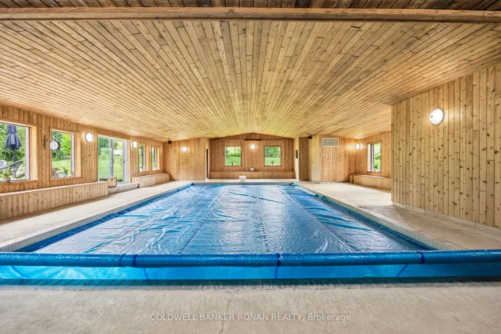 +"PublicRemarks": "Stunning All-Brick 5-Bedroom Home with Indoor Heated Pool. Enjoy country living with city convenience in this spacious all-brick home featuring 5 bedrooms and 3 bathrooms. Highlights include hardwood floors, a formal dining room with French doors, a cozy family room with stone fireplace, and a bright kitchen with stainless steel appliances, butcherblock counters, and walkout to a large deck. The showpiece is the private indoor heated pool, complete with patio access and versatile storage rooms that could double as change rooms or an extra bath. The primary suite offers a walk-in closet and 3-piece ensuite. Additional features include a home office, double garage, outdoor workshop/storage, and a finished lower level with storage/workshop space. Located minutes from Hwy 9, Hwy 400, shopping, and this rare property blends comfort, privacy, and convenience."