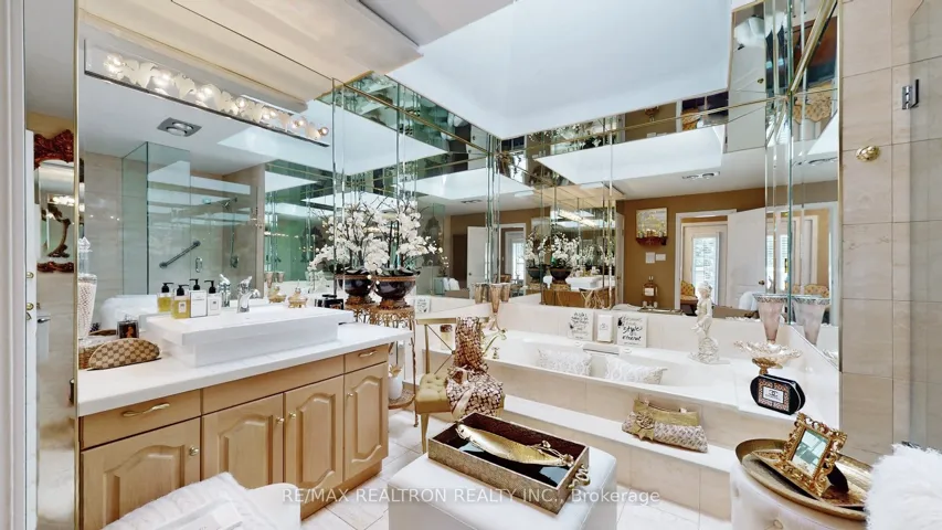 +"PublicRemarks": "Prestigious estate home on 1.47 acres with future -acre severance potential. Offering over 5000 sq.ft. of luxury living, this custom residence features a grand foyer with soaring ceilings, hardwood floors, crown mouldings, pot lights, and 4 fireplaces. Sun-filled family room with wet bar & built-in speakers, chefs kitchen, sunroom with skylights, and main floor office. Laundry on the main floor. Master retreat with private terrace, lavish ensuite & his/her closets. Finished lower level with separate entrance, gym, sauna, games & recreation rooms. Set on a 400+ ft frontage backing to conservation & ravine in an enclave of multi-million-dollar estates."