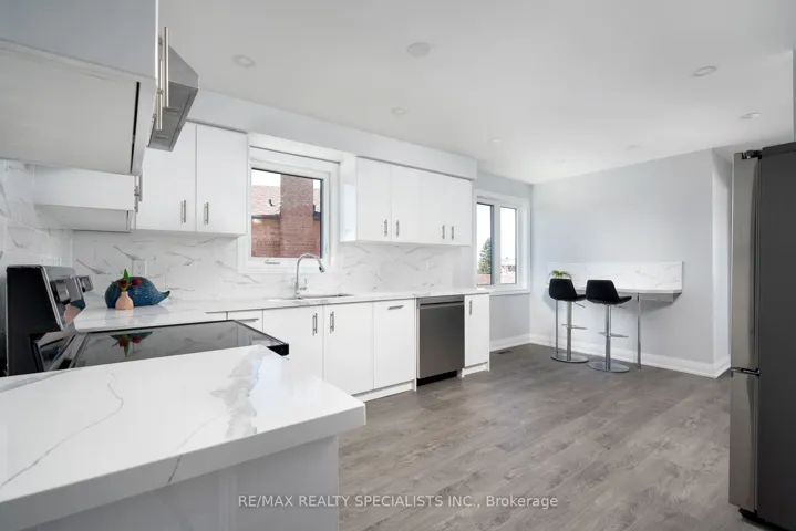 +"PublicRemarks": "Welcome to your dream home! This stunning 3-bed, 2-bath raised bungalow is a beacon of modern elegance, boasting an abundance of natural light that bathes every corner of the house. Meticulously renovated with a keen eye for quality, every detail exudes sophistication and comfort with new vinyl flooring throughout, new pot lights, light fixtures, porcelain tiles, and two modern washrooms with a glass walk-in shower. Indulge in the epitome of culinary delight in the beautiful new custom kitchen adorned with exquisite quartz countertops and porcelain tiles backsplash, creating an inviting space where every meal becomes a celebration. Located minutes to shopping centres, restaurants, transit and highways."