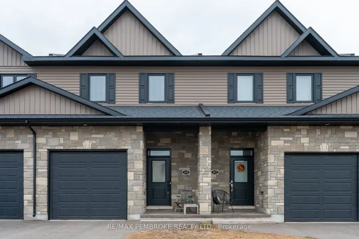 +"PublicRemarks": "This modern, beautifully maintained three bedroom, three bathroom townhouse is ideal for someone looking for quality finishes and style throughout. This bright and airy home is move-in ready whether to owner-occupy or as an investment property. The main floor features an open concept living-dining-kitchen layout with 8.5' ceilings and large windows offering ample natural light and patio doors that lead to a deck perfect for outdoor lounging. The generous kitchen is finished with plenty of custom cabinetry cupboards, a large island, and stainless steel appliances. The main floor is completed with a convenient powder room and foyer with large closet. Luxury vinyl plank flooring throughout the main level is continued again on the second floor, and all bathroom floors are finished with ceramic tile. The large primary suite includes an impressive walk-in closet and full ensuite with walk-in shower. Two additional bedrooms share a full bathroom, perfect for family or guests. The upper floor is complete with a handy laundry room and large linen closet. The lower level has a spacious family room as well as a large enclosed storage area. This home offers the added convenience of an attached garage with an automatic opener. This lovely townhome is close to Garrison Petawawa and a short commute to Highway 17 and CNL. Minimum 24-hour Irrevocable on any written Offer from a Buyer."