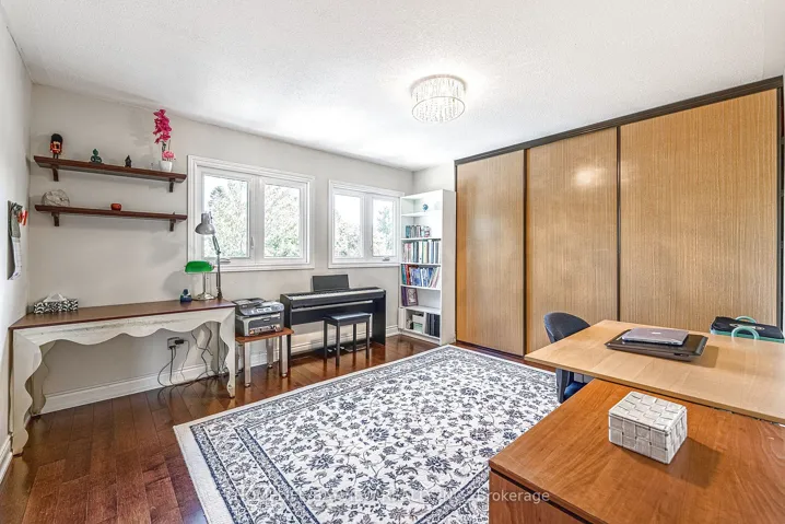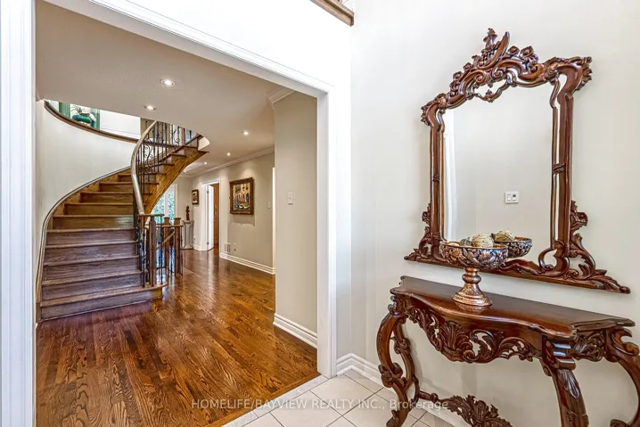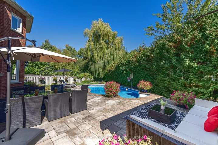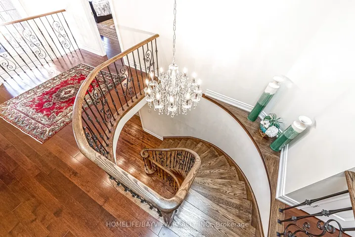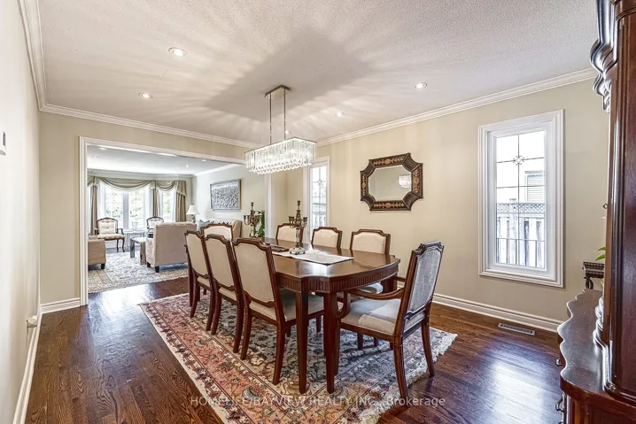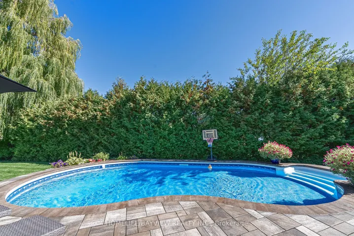 +"PublicRemarks": "Luxury 4000 sqft on 2 floors plus a finished basement apartment with separate entrance and separate laundry for a total of aprox 5700 sqft of living space sitting on a huge pie shaped lot on a quiet court, cul de sac child safe location, with a huge private treed backyard featuring an inground swimming pool. This home features 5+2 bedrooms, 5 bathrooms, 2 kitchens, 2 laundry rooms, long interlocking 5 car driveway with no sidewalk, hardwood floors throughout, skylight, main floor office, huge family room overlooking the pool, large eat in kitchen with central island, combined liv/din rooms for entertaining, main floor laundry with direct access to the garage, circular oak stairs open to basement, oversized primary bedroom retreat with his and hers walk in closets and a well appointed ensuite bathroom with deep tub and separate shower. The basement features a large recroom and a fully self contained 2 bedroom unit with a full kitchen, own laundry, walk-up separate entrance and a secondary electrical panel. steps to transit, school, park and ravines. minutes to highway 404 and more."