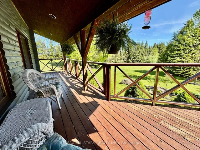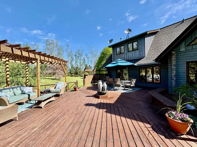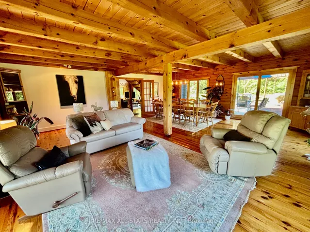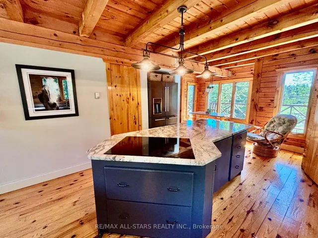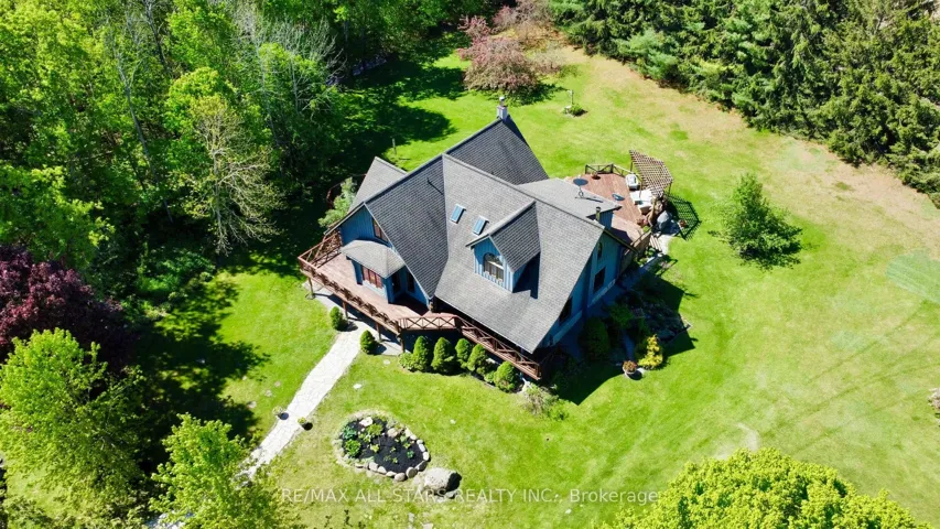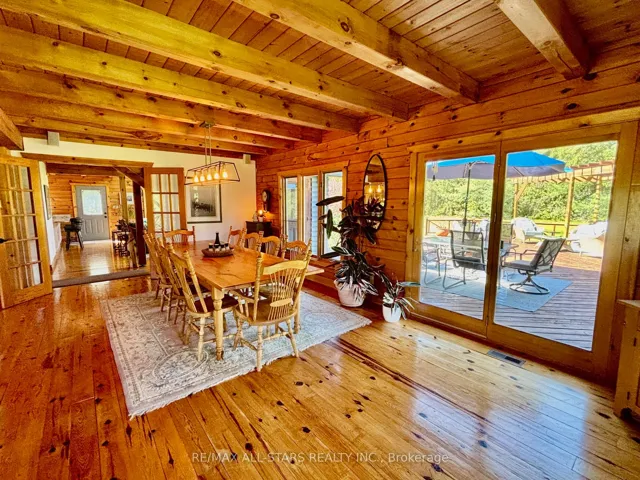 +"PublicRemarks": "Situated on a quiet country road and surrounded by nature, this custom log home offers a rare combination of rustic charm and refined living on a breathtaking 9-acre estate. Located just minutes north of Uxbridge and conveniently close to Lakeridge Rd for quick 407 access, this property is the perfect rural retreat with urban convenience. As you enter the property, you're welcomed by a stunning 3,900 sq. ft. barn, designed for both function and beauty. Featuring six spacious hemlock stalls with automatic waterers and easy-access feeders, the barn also includes a heated tack room, 2-piece bathroom, laundry, and separate hay storage. The second floor offers a bright, partially finished space with two private entrances and walkout decksideal for an office, studio, or future guest quarters. Continue along the drive to a detached three-car garage and the main residencea showstopping log home that perfectly balances rustic sophistication with modern comforts. Inside, expansive windows flood the home with natural light and offer panoramic views of the surrounding landscape. The wrap-around decks are perfect for entertaining or enjoying quiet moments, including a spa tub tucked into the trees for year-round relaxation. The heart of the home is the chefs kitchen, complete with a generous island, a cozy breakfast nook, and an open-concept family room warmed by a classic wood stove. Entertain in style with a formal dining and living room featuring a convenient gas fireplace. Upstairs, three inviting bedrooms exude warmth and character, including a primary suite with double walk-in closets and a private ensuite bath. Outside, the beautifully manicured grounds are a true oasis, surrounded by perennial gardens and natural beauty in every direction. Whether you're seeking a full-time residence, hobby farm, or multi-use estate, this one-of-a-kind property delivers on every level."