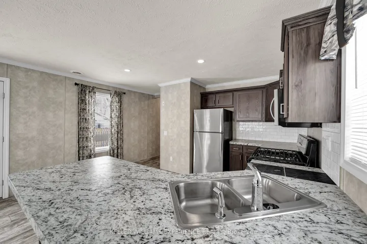 +"PublicRemarks": "This brand-new mobile home is situated in a quiet, well-maintained Angus park, offering a peaceful and convenient lifestyle. Built on a solid concrete pad with hurricane straps, this home is designed for durability and comfort. Step inside to discover a spacious, open-concept layout featuring a modern eat-in kitchen with sleek stainless steel appliances and stylish laminate flooring throughout - completely carpet-free! The home offers two generously sized bedrooms, a full bathroom with ample storage, and a walkout to 2 brand-new decks - front and back, overlooking a fully fenced yard on a generous lot. A new garden shed provides additional storage space, while the double driveway adds extra convenience. All appliances are brand new, including a gas dryer. Located just minutes from all amenities, with quick access to Angus, Base Borden, and Alliston, this home is perfect for those seeking comfort, style, and easy living. Fees $511.52/Month include taxes, water, and road maintenence. Don't miss this fantastic opportunity - schedule your viewing today!"