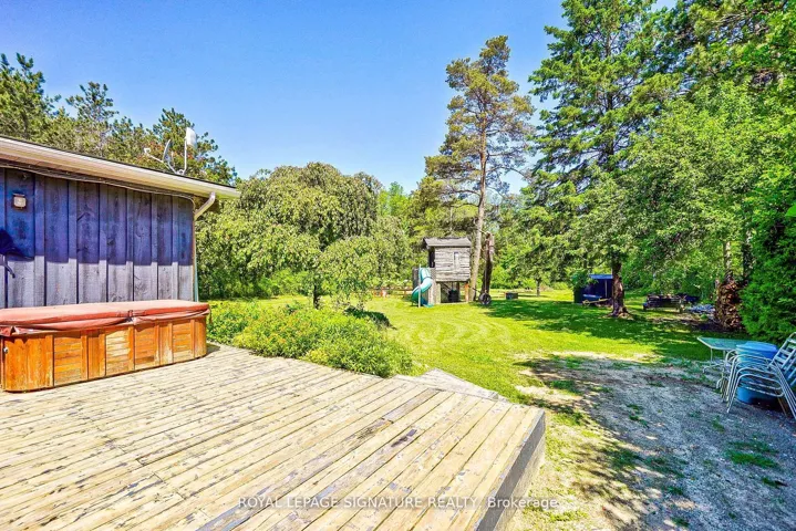 +"PublicRemarks": "Welcome to this well-maintained detached 3 Bedroom, 1 Bath Home on HWY 60, Huntsville. Located just 10 minutes from downtown Huntsville, this house offers comfort, privacy, and character. The bright, open-concept living and dining area flows seamlessly into a cheerful kitchen with a walkout to the backyard and an island perfect for family gatherings. A versatile bonus room on the main floor provides the ideal space for a reading nook, playroom, or music room. The main level features hardwood flooring, soaring 10-ft ceilings, and plenty of natural light. Upstairs, you'll find three bedrooms, including a spacious primary suite with double closets and a sitting area, along with a 4-piece bathroom. The property also boasts a 24 x 26 detached double-car garage, a circular driveway with plenty of parking, an 8 x 10 insulated and wired treehouse, a fire pit, and beautifully landscaped gardens. All of this is within walking distance to public access at Peninsula Lake. Close to shops, hospital, school, parks and Echo Valley Nature & Bike trails."