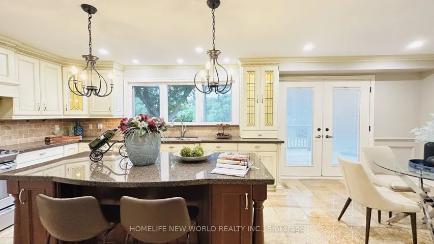 +"PublicRemarks": "This stunning updated home nestled on a gorgeous ravine lot in prestigious Thornhill. The home boasts around 5000 sqft of luxurious living space. Featuring hardwood flooring & pot lights throughout. Freshly painted. Double door entrance. The gourmet kitchen showcases marble flooring, custom cabinetry, granite countertops, an elegant center island, built-in appliances, as well as cabinet lighting for added sophistication. The oversize primary bedroom offers 5pc ensuite and walk-in closet. A large skylight with built-in lighting floods the space with natural light and inviting atmosphere. Side entrance with large custom closet for shoes and outerwear, providing everyday practicality. Fully finished basement with separate entrance and huge recreation area. Both the front and back yards are beautifully landscaped with paved interlock. The Oversize stained deck perfect for summer BBQ and entertaining guests. This home is located in a top tier school ( Thornlea SS, St. Roberts CHS ) with easy access to major highways, transit, scenic trails and parks, community centre, shops and restaurants. Brand new Lennox AC, Water heater owned. Don't miss it!"