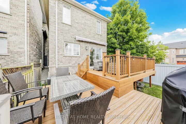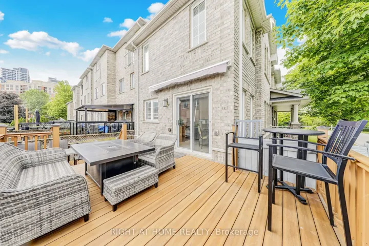 +"PublicRemarks": "Move in ready corner executive freehold townhome. Just like a semi-detached the home is connected only by the garage and one bedroom. The main floor features 9 ft ceilings, hardwood throughout, and a versatile study/4th bedroom. The kitchen offers granite counters, stainless steel appliances, and walk-out to a 2-level professional expensive composite deck with an electric awning perfect for entertaining in all seasons. Upstairs, the primary suite includes a 4-pc ensuite, walk-in closet, and rough-in for 2nd-floor laundry. The professionally finished basement adds a large recreation room, 3-pc bath, brand new laundry suite, and kitchenette rough-in. Access to basement from garage. In-law living or income potential. all expensive updates complete roof (2018), HVAC (2021), garage door (2019). EV-ready garage. An entertainers dream enjoy a fenced corner lot, covered porch facing a parkette. Perfect for commuters and families. Close top schools Red Maple PS, St. Robert CHS, IB program schools, Langstaff GO (20 minute walk), VIVA transit, shops, and Hwys 7/407/404."