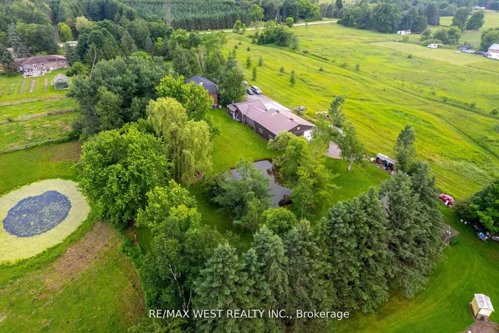+"PublicRemarks": "Charming 3-bedroom bungalow set on approximately 10 acres in sought-after New Tecumseth, this property offers endless possibilities for those seeking space, privacy and potential. Nestled among mature trees and complete with a private pond, the home features nearly 2,500 sqft of main floor living space plus a finished walk-out basement, providing plenty of room for family living, entertaining, or multi-generational use. Car enthusiasts and hobbyists will appreciate the heated workshop and detached garage with capacity for up to 10 vehicles, while the expansive acreage presents opportunities for gardening, recreation, or future customization to suit your lifestyle. A rare blend of tranquility and convenience, this property is located less than 5 minutes from local amenities and only 10 minutes from Highway 400, making it the ideal retreat for those who want to enjoy country living without sacrificing access to the city."