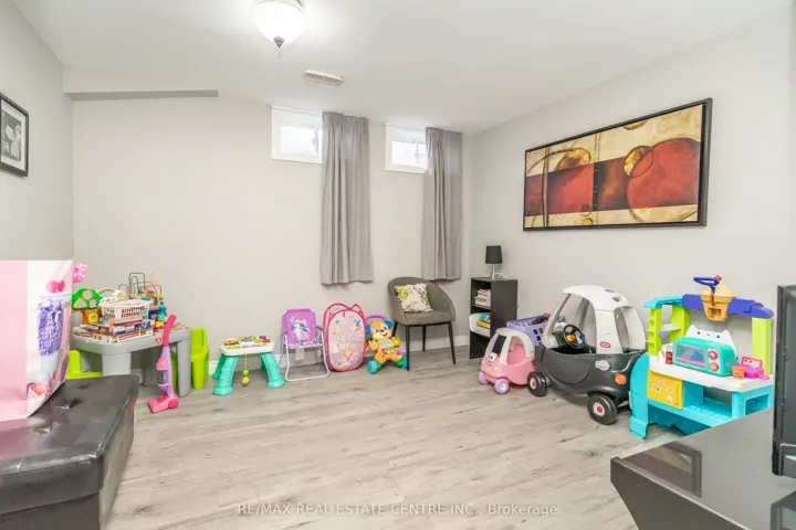 +"PublicRemarks": "Well Maintained & Upgraded All Brick Freehold Townhouse. Bright Open Concept Main Floor Living Area with Large Foyer & Double Coat Closet. Kitchen with Island Breakfast Bar, Pendant Lighting & Quartz Counter. Living & Dining Area with Large Window and Sliding Doors that Walk Out to Fenced Yard with Patio. Upper Level Offers Primary Bedroom with Semi Ensuite 4pc Bath. Plus Two More Good Size Bedrooms each with Dbl Closet & Large Window. Partially Finished Basement Rec Room, Playroom/Office, Laundry Rm & Storage. Good Size Backyard with Patio, Great Space to Unwind with the Family. Excellent Location, Easy Walk to Park, School & Downtown with All Amenities. New Laminate Flooring, Crown Molding, LED Light Fixtures & Paint 2023. New Furnace with Eco Thermostat, Central Air, Washer & Dryer in 2022. New Stove & Quartz Counter 2020."