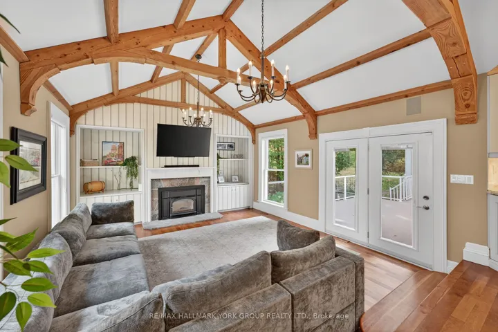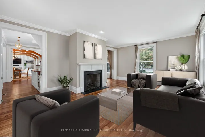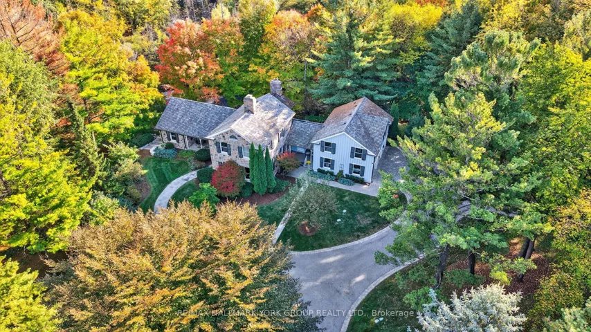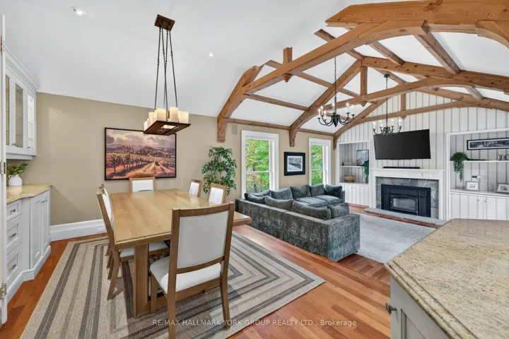 +"PublicRemarks": "Welcome to Ridgewood, one of Aurora's most distinguished estate properties. Privately set behind gates on three manicured acres, this custom-built residence blends timeless architecture with modern luxury for an exceptional lifestyle. A circular drive leads to an elegant façade and inviting interior where refined craftsmanship meets everyday comfort. The chef's kitchen, equipped with premium appliances, opens to a grand vaulted family room with exposed beams and expansive views of the grounds. The main floor features a serene primary suite with a spa-inspired ensuite and custom dressing room. Upstairs, two additional bedrooms with private ensuites offer stylish comfort for family or guests. The finished walk-out lower level is designed for entertaining-featuring a home theater, gym, recreation lounge, wine cellar, and an arched-ceiling tasting room perfect for gatherings. A fourth bedroom adds versatility for guests or extended family. Above the three-car garage, a self-contained one-bedroom apartment includes a full kitchen, living room, and bedroom-ideal for multi-generational living, a nanny, a private office, or luxurious guest quarters.The outdoor setting is a resort-style retreat. Mature trees, lush gardens, and ambient lighting surround a stunning inground pool and hot tub. The poolside pavilion offers a fireplace, outdoor kitchen, two-piece bath, and change area-making entertaining effortless.With nearly 1,100 feet of frontage, enjoy your own walking trails, dog run, and direct access to the St. Andrews on the Hill trail network. Steps to St. Andrew's College and St. Anne's School, and just minutes to golf, shopping, and major highways.Ridgewood is more than a home-it's a private sanctuary where elegance, comfort, and nature exist in perfect harmony."
