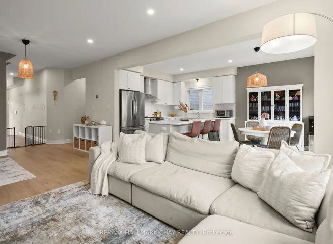 +"PublicRemarks": "Welcome to this beautifully upgraded executive-style home in the sought-after Treetops community. From the moment you step inside, you'll notice the light engineered hardwood flooring that flows seamlessly throughout both levels, creating a bright and elegant atmosphere. The heart of the home is the custom kitchen, designed with an extended island featuring a built-in bar fridge, quartz countertops, and upgraded cabinetry. Every detail has been thoughtfully curated, including stylish new light fixtures, making this space perfect for both everyday living and entertaining. The upper level offers four spacious bedrooms, including a stunning primary retreat. Here you'll find a customized oversized walk-in shower, quartz-topped dual vanity, and a massive walk-in closet that is sure to impress. The additional bedrooms are generous in size, providing plenty of space for family or guests. Even the main floor laundry room has been elevated, showcasing modern backsplash and cabinetry for both style and function. The unspoiled basement offers endless potential, with a rough-in for an additional bathroom ready for your finishing touches. Outside, enjoy a fully fenced backyard that offers privacy and room to play or relax. All this in a prime location, just steps to Treetops Park, upcoming trails, schools, shopping, and a short drive to Highway 400 for easy commuting. This home combines thoughtful upgrades, modern finishes, and a fantastic family-friendly location truly move-in ready for its next owners."