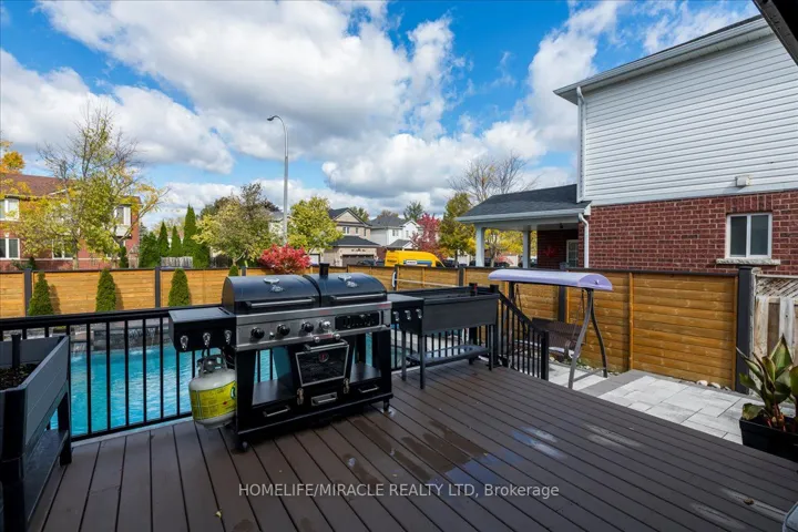 +"PublicRemarks": "Immaculate home on a premium large corner lot featuring over $350,000 in upgrades. This stunning property offers 4 bedrooms and 3 bathrooms, plus a finished basement apartment with a separate entrance, bedroom, full kitchen, living area, and full bath. The main floor features open concept living with elegant finishes, hardwood flooring, and a chef's dream kitchen with an oversized island, extended cabinets, and high-end Samsung appliances throughout. An oak staircase with a glass railing leads to a beautiful second floor offering 4 large bedrooms. The primary suite includes a spacious walk-in closet with custom organizers and a spa-like ensuite. The primary bedroom overlooks the pool and fountain, creating a peaceful and inviting morning view. Exterior highlights include a double car garage, stamped concrete driveway and walkways, parking for up to 6 vehicles, and professional landscaping throughout. The backyard is an entertainer's dream, complete with interlock stone, a wood patio, and a large pool with a beautiful fountain. Located in a triple A location close to schools, retail shopping centres, the Honda plant, and more. This breathtaking home offers luxury, comfort, and exceptional curb appeal inside and out."