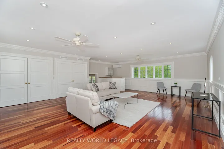 +"PublicRemarks": "Where can you find a detached home on over 6 acres of pristine countryside, just 10 minutes from every amenity? That same home offers more than 3,000 sqft of finished living space plus a separate, detached shop? It might sound too good to be true-but it's real. Welcome to 4313 20 Sideroad, a home that embraces every season, especially the cozy ones. This property welcomes you with hardwood floors, elegant tile finishes, upgraded HVAC, and newer windows for year-round comfort. Outside, the stone driveway and heated steps lead to a grand double-door entrance framed by gardens that still hold color deep into fall. The expansive composite deck, forested backdrop, and meandering stream offer the perfect spot to watch the leaves turn or the first snow fall. Inside, a winding wood staircase sets the tone for the home's warmth and elegance. To one side, a formal dining room large enough for holiday gatherings; to the other, a home office with a view of the drive. The kitchen anchors the back of the main floor with generous workspace and patio access for year-round entertaining. After dinner, unwind in the sitting room, complete with wood-burning fireplace-a perfect place for quiet winter evenings.A spacious media room with wet bar round out the main floor, offering space for guests or game nights. Upstairs, find three spacious bedrooms, each with its own Juliette balcony. The primary suite features hardwood floors, natural light, a walk-in closet, and a spa-inspired ensuite with dual vanities, glass shower, and soaker tub. A second full bath and large laundry room add convenience and function.The separate shop/garage at the southern edge of the property includes electrical service and endless possibilities for hobbies, storage, or workspace.Whether you're walking the trails under autumn colors or sipping cocoa by the fire, 4313 20 Sideroad is more than a house-it's a home for every season.Book your private tour today and discover elevated country living."
