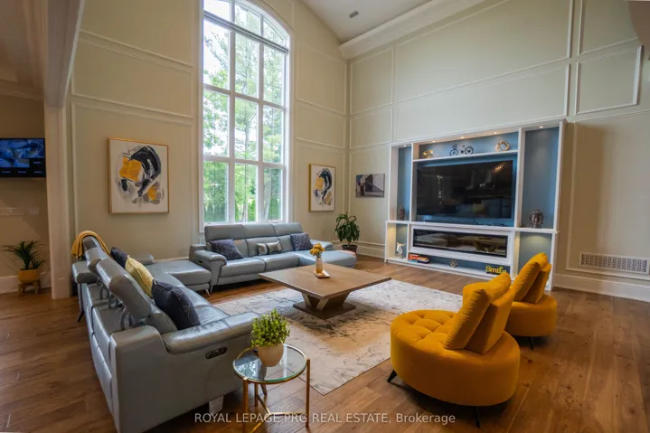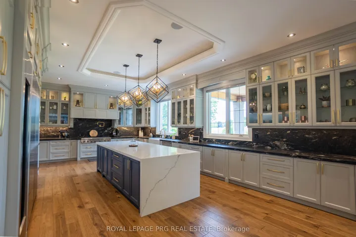 +"PublicRemarks": "Introducing a rare opportunity to own this show-stopping custom estate offering over 12,000 sq ft of luxurious living space (8,000 sq ft above grade + 4,000 sq ft finished basement). Every inch of this home has been designed and crafted with uncompromising attention to detail and top-tier finishes throughout. Wrapped in Indiana limestone with oversized windows flooding the space with natural light, this home makes an unforgettable impression from the curb to the backyard oasis. Inside, you're welcomed by over 20 ft open-to-above ceilings in the foyer and family room, with 11 ft ceilings on the main floor and 10 ft on both the second level and basement. The heart of the home features a large custom kitchen with premium appliances, designer plumbing fixtures, and a fully functional spice kitchen - perfect for elevated entertaining. Rich hand-scraped hickory engineered floors flow throughout, adding warmth and elegance to the expansive open-concept layout. With 5 spacious bedrooms and 7.5 luxurious bathrooms, this home is designed for multi-generational living and ultimate comfort. The main floor office, oversized 3-car garage, and smart home wiring offer the practicality and tech-savvy convenience todays homeowners expect. The fully finished basement boasts a sprawling open-concept layout ready for a home theatre, gym, bar, or additional suites - endless possibilities to customize your lifestyle. This is more than just a home - it's a lifestyle of prestige, comfort, and refined living."