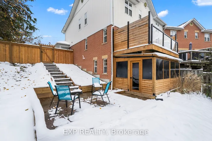 +"PublicRemarks": "Beautifully Updated End-Unit Townhome Backing Onto Conservation! This exceptional end-unit townhome sits on a premium lot at the end of a quiet court, offering expansive ravine and conservation views. Completely updated from top to bottom, the home features stunning wide-plank white oak engineered hardwood floors, a bright open-concept main level, and a chef-inspired kitchen with a gorgeous waterfall quartz island. The living/dining area opens directly onto a private deck overlooking the ravine-perfect for relaxing or entertaining, complete with a natural gas BBQ hookup. Upstairs, you'll find 3 spacious bedrooms including a primary suite with vaulted ceilings, a walk-in closet, and a beautifully updated 4-piece ensuite with modern designer fixtures. The walkout lower level extends the living space with a bright bedroom, full bath, indoor, outdoor workout room, office area, laundry, incredible storage space and direct access to the backyard-ideal for guests, in-laws, or a private retreat. With 3+1 bedrooms and 3.5 stylishly renovated bathrooms, this home offers exceptional space, modern luxury, and unmatched privacy. Conveniently located within walking distance to Newmarket High School (French Immersion), Pickering College, and Bogart Public School, as well as transit, recreation facilities, and just 5 minutes to Hwy 404. Furnace replaced in 2020, AC, Instant Hot water, all appliances just 2 yrs new! Everything done. A rare opportunity for an end-unit townhome with extensive ravine views in one of Newmarket's most desirable pockets-truly move-in ready!"
