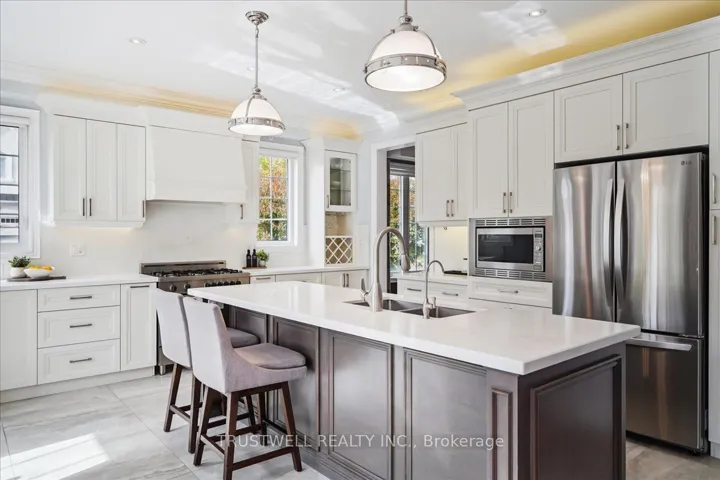 +"PublicRemarks": "Welcome to Upper Thornhill Estates where elegance meets comfort in this exquisite 4+2 bedroom corner-lot residence backing onto a peaceful ravine.Showcasing timeless stucco and stone architecture, this sun-filled home offers over 5,000 sq.ft. of total finished living space including the fully finished basement, thoughtfully designed with premium features throughout. Step into an impressive double-height foyer and enjoy soaring 9-foot ceilings on main and second floors, oversized windows, and gleaming hardwood floors. Refined details include smooth ceilings, crown moulding, recessed lighting, and a stately oak staircase with iron pickets.The heart of the home is the gourmet kitchen, equipped with a Bertazzoni gas range, granite countertops, and ample storage ideal for everyday living and entertaining alike. Granite finishes also elevate all bathrooms for a cohesive, upscale feel. Custom blinds offer both function and style throughout the home.Step outside to enjoy the professionally designed two-tier sun deck with serene views of the ravine. Direct access to nearby walking and hiking trails makes it easy to enjoy the nature year-round. Ideally located just steps from parks and transit, and minutes to top-rated schools and shopping."