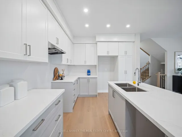 +"PublicRemarks": "Welcome to 20-80 Daisy Avenue, a professionally renovated 3+1 bedroom, 3-bathroom townhome in the heart of Long Branch. Redesigned in 2023 with approximately $150,000 invested in quality upgrades, this residence offers cohesive design and turnkey living in one of South Etobicoke's established lakeside communities. The kitchen was fully renovated with quartz countertops, upgraded lighting, a gas stove, wine fridge, and counter-depth appliances, including a built-in refrigerator. A gas line to the BBQ extends functionality to the outdoor space. Hardwood flooring runs through the kitchen and bedrooms, complemented by black square pot lights, upgraded black switches and hardware, and matching black-painted window frames for a consistent modern aesthetic. All bathrooms were updated in 2023. The primary ensuite features a smoked glass shower and heated flooring. Custom millwork and integrated storage enhance day-to-day functionality, including an upgraded primary walk-in closet. A gas fireplace anchors the main living area. Additional features include smart home lighting, a camera doorbell, custom window coverings throughout, and two parking spaces .Conveniently located just steps to waterfront parks and trails, Long Branch GO Station, TTC access, and neighborhood shops and cafés."