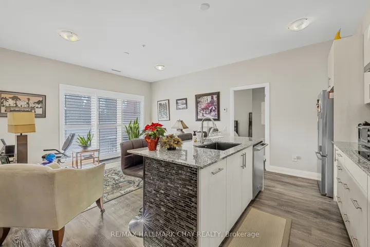 +"PublicRemarks": "Step into the perfect blend of convenience and comfort with this impressive first floor one bedroom plus den condo. Enjoy the ease of bringing in groceries or taking pets for a walk with no need for elevator use. The large 12X27 ft terrace offers direct access to outdoor spaces unique to ground floor living. Vista Blue Condo Building built in 2020 is perfectly situated steps away from shopping, dining and everyday conveniences. Admire the beauty of the Trans Canada Trail and the Conservation area just outside your door. Designed to impress, the kitchen features tasteful upgrades and is equipped with professional grade appliances (barely used), granite counter tops and an upgraded centre island. The primary bedroom includes a 4 pc ensuite bath with double sinks and an oversized walk in shower. This south facing suite is also enhanced by an open concept design, 9 foot ceilings, a 2 pc guest washroom, in suite laundry and California Shutters. The underground parking brings an extra level of comfort while keeping your car protected from the elements. This unit and the entire building exemplify clean, well kept spaces. Host gatherings in the spacious party/games room, featuring a well appointed kitchen and views of the conservation area. The building also offers guest parking and front entry handicapped accessible spaces for added convenience."