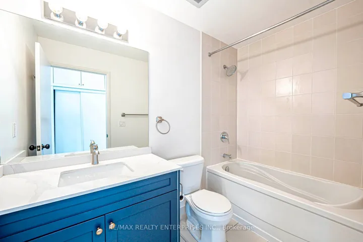 +"PublicRemarks": "Are you looking for a bright south-facing condo with 10-foot ceilings and huge windows at a fantastic price? This beautifully renovated suite offers 915 square feet of stylish interior living space, plus a covered balcony. You'll love the open-concept layout featuring a renovated kitchen with tall cabinets, quartz countertops and stainless steel appliances. The suite includes custom room darkening blinds, upgraded light fixtures and in-suite laundry with new full-size front-load machines. Freshly painted throughout plus newer upgraded luxury vinyl plank flooring.. You'll be impressed by the king-sized primary suite with a 4-piece ensuite bathroom, walk-in closet, and two additional closet/storage spaces. The second bedroom, located directly across from the main bathroom, is also spacious, offering a closet and extra storage cupboard. Just outside your suite door, enjoy incredible amenities, including a wet & dry sauna, heated indoor pool, gym, yoga studio, guest suites, a party room with a kitchen, terrace with barbecues, games room, and kids' playroom, plus a 24-hour concierge and underground visitor parking. Bonus features include a medical clinic, pharmacy, Aisle 24 Market, and more on the ground floor! With a premium location close to the subway for easy downtown commuting and just minutes from shopping, entertainment, and the 400, 407, and 401 highways, this condo includes one locker, one parking spot located near accessible power door entrance plus extra spots are available on a monthly basis in visitor parking. Note: some photos show virtual staging."