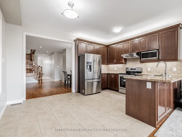 +"PublicRemarks": "Welcome to your future executive home - first time on the market! Built by Remington in 2012and meticulously maintained by its original owner, this stunning 4-bedroom, 4-bathroomexecutive end-unit freehold town home sits on a premium oversized lot and is attached only at the garage, offering the feel of a detached home. With 3,000+ sq. ft. of total luxury living space (2,049 sq. ft. above grade), this home is truly move-in ready.Step inside to a bright, open-concept layout featuring 9-ft smooth ceilings, 3-inch vintage oak flooring, fresh paint throughout, and an elegant oak staircase with upgraded pickets and handrail. The gourmet kitchen boasts granite countertops, stainless steel appliances, an eat-in breakfast area, and a walk-out to the deck through a 2025 upgraded sliding door with Venetian inserts.The professionally finished basement offers a spacious walk-out design with 7-inch vinyl flooring, fresh paint, a Napoleon fireplace, and a stunning stone accent wall. Additional upgrades include a Navien Energy-Star tankless owned HWT (2020), a complete water softener and filtration system (2017), and custom laundry cabinetry with sink.The second floor is completely carpet-free, featuring vintage oak flooring, upgraded baseboards and trim, and custom organized closet systems in all bedrooms. The main bathroom and the luxurious ensuite were both renovated in 2025, showcasing premium fixtures and finishes. The primary bedroom also includes an electric fireplace and a beautifully organized walk-in closet with pot lights.The exterior offers a serene setting on a quiet street, complete with an extended driveway,garage wall storage system, and a charming flagstone walkway leading to the backyard.This end-unit gem combines luxury, style, and comfort - truly a rare find. Move-in ready and waiting for you! See attached FEATURED SHEET"