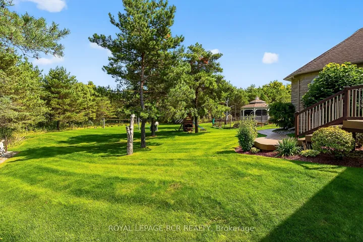 +"PublicRemarks": "Rare 3923sf Elegant Tuscan Styled Bungalow Estate on a 2.71 acre mature forest lot fabulously located at the end of a quiet court. It is nestled into the prestigious Heritage Hills II enclave, just a couple of minutes south of downtown Uxbridge with direct access to the famous Uxbridge Trails (Country Side Preserve.)This unique architectural beauty surrounds a central back courtyard and is complimented with soaring ceilings, numerous windows, finished basement and 4 car garage. It is nestled into a breathtaking 2.71 acre property backing to forest and the Wooden Sticks Golf Course. This exceptional floor plan is designed for entertaining. The heart of the home is the oversized Tuscan-inspired kitchen, presenting a breakfast bar, a centre island and an entertaining-size huge family room. The sunlit main floor, with numerous walk-outs features, formal dining and living room, library, two wings with primary bedroom suites (which can easily be converted to 3 bedrooms), laundry room and an additional staircase to the basement. The professionally finished basement includes a service kitchen, two bedrooms, two bathrooms, a hobby room, an exceptional wine cellar, custom bar, recreation and games room, and ample storage space. The magnificent resort style backyard paradise with mature trees, formal landscaping, several walk-ways, symmetrical flower beds and manicured hedges has been exceptionally planned and maintained. Enjoy all the vacation features of a free-form inground pool with built-in bar, waterfall, gazebo, pool house with bar, outdoor kitchen, central court yard, lazy river stream, volleyball court, horseshoe pit, vegetable garden, firepit and forest trail. The Heritage Hills Residents often walk or ride into Town through the scenic trails. Welcome to Paradise! **EXTRAS** Fibre Optic Internet. Generator, inground sprinklers, heated floors in 2 basement bedrooms and 4 pc bath, jacuzzi tubs in Primary bath & basement bath. Gazebo, garden shed, pool house."