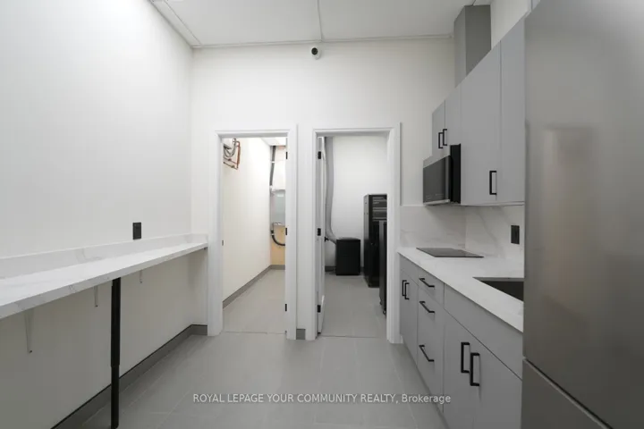 +"PublicRemarks": "This property is approximately 3,900 square feet and was newly completed in January 2025, so it's essentially brand new. Originally delivered as a shell, it has been fully built out to a high standard.It features seven rooms, including a full kitchen and an additional kitchenette, as well as a spacious washroom that includes a shower. The flooring is high grade commercial carpet, and the ceilings are not your standard type-they're high-end with about a 12-foot height.The property also includes a storage area and has two separate entrance doors. There is a semi-private elevator, and as mentioned, there's also a kitchenette in addition to the main kitchen.The office is fully networked with Cat6 cabling throughout, providing network access everywhere, and it has a 200-amp power supply with a dedicated 600-volt line. Both 110-volt and 240-volt three-phase power options are available.It's equipped with a full fire suppression system and built-in ceiling speakers for a central music system. There are about 32 cameras installed for security, and the two separate entrances are fitted with Ring bells and dedicated security cameras.Finally, the property is currently combined into a single unit from three separate titles, making it a very versatile and ready-to-use office space."