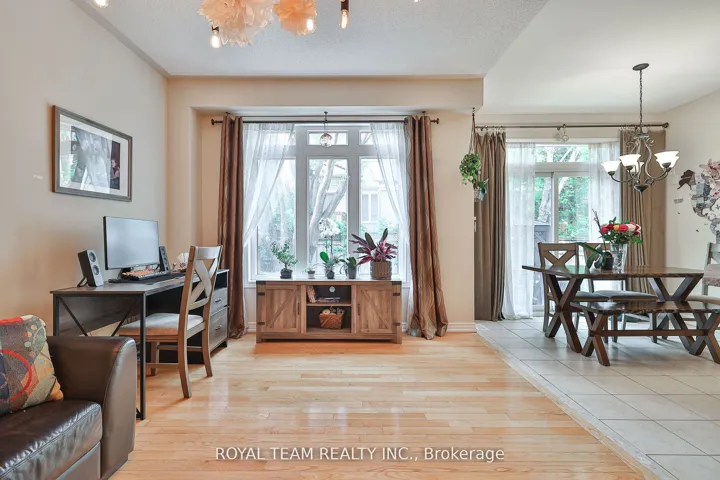 +"PublicRemarks": "Welcome to this absolutely beautiful Aspen Ridge end-unit townhome, tucked away in the prestigious and peaceful Thornhill Woods community. Attached only by the garage, this warm and welcoming home features an open-concept main floor with hardwood floors, 9-foot ceilings, a spacious family room, and a bright kitchen with a full-size breakfast area, breakfast bar, and walk-out to a private, landscaped backyard with mature trees and a stone patio perfect for relaxing or entertaining. Upstairs, all bedrooms are generously sized, with the primary offering a 5-piece ensuite and walk-in closet. The professionally finished basement offers a recreational space, two versatile rooms for home office or guest use, and a bathroom. With direct garage access, a three-car driveway and no sidewalk, the home combines comfort and convenience. All this is just minutes from the GO Train, Highway 407, public transit, scenic trails, parks, and top-rated schools making it a truly exceptional place to call home."