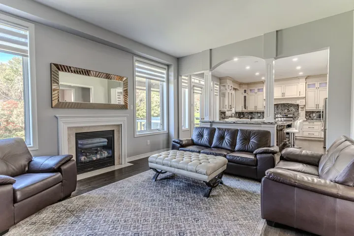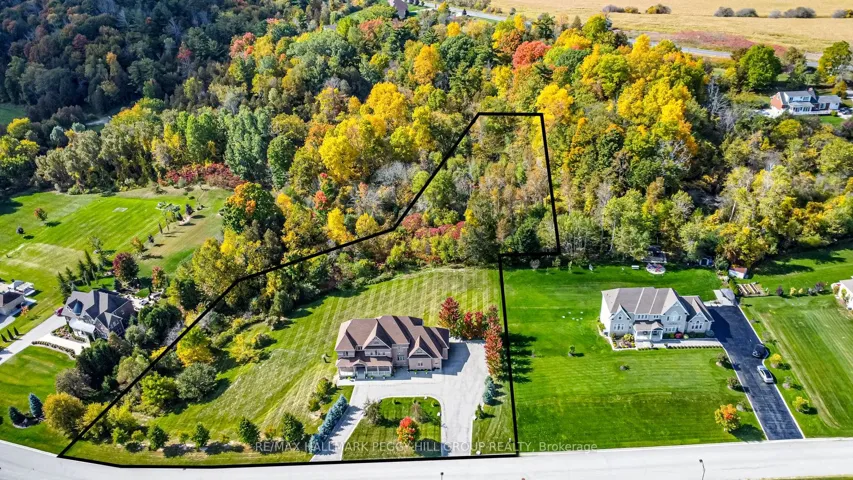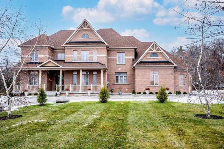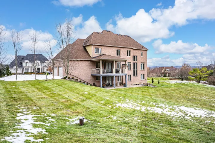 +"PublicRemarks": "ESTATE HOME SHOWCASING OVER 5,100 SQ FT, IN-LAW POTENTIAL, LUXURIOUS FINISHES, TRIPLE GARAGE, & 2.33-ACRE LOT! Set on a prestigious 2.33-acre estate in The Shires Estates, Bradford's most distinguished country estate community inspired by the timeless charm of the English countryside, this stately all-brick home offers over 5,100 finished square feet of refined living. The impressive exterior showcases a circular driveway, a covered front porch with double doors, soffit lighting, and a triple garage with inside entry. A 20-foot cathedral ceiling, floor-to-ceiling windows, and a grand spiral staircase create a striking first impression, while 10-ft ceilings on the main level and 9-ft ceilings on the upper and lower levels enhance the home's scale. The custom kitchen features granite countertops, a large island, custom cabinetry topped with crown moulding, tile backsplash, stainless steel appliances, and a walkout to the deck. The main level also offers hardwood floors, a formal dining room, a living room with a gas fireplace and built-in cabinetry, two dens, and a laundry room. The generous primary bedroom showcases dual walk-in closets and a 5-piece ensuite with a soaker tub, glass-walled shower, dual vanity, and water closet, while three additional bedrooms feature private or shared ensuite access. The walkout basement provides excellent in-law capability with a kitchen boasting quartz countertops, an island, stainless steel appliances, a large rec room, two bedrooms, two full bathrooms, laundry, and a cantina. Backing onto a ravine with towering trees offering privacy, complete with a covered composite deck with glass railings, a lower-level patio, and an irrigation system. Additional highlights include a drilled well, water softener, filters, UV, reverse osmosis, HRV, high-efficiency furnace, central air conditioning, central vac, and a 200-amp electrical panel. A #Home To Stay of distinction where craftsmanship, scale, and setting exceed expectations."