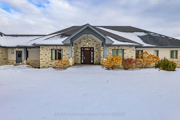 +"PublicRemarks": "Exceptional true ranch bungalow offering timeless craftsmanship, thoughtful design, remarkable versatility, set on approx 1.25 acres (frontage to be verified). This custom-built home delivers 9-foot ceilings, flat ceilings throughout, extensive pot lighting, extra-high beveled baseboards, wide decorative trim, and solid wood interior doors, reflecting enduring quality at every turn. The custom built Fischer kitchen overlooks & walks out to the backyard, opens seamlessly to the family rm, creating an ideal space for everyday living/entertaining. Warm maple cabinetry, quartz countertops, lrg centre island w/prep sink, second sink overlooking the backyard, b/i microwave, a premium Kitchen Aid stainless steel appliance package provide both function & longevity. The adjacent living rm features a waffle/coffered ceiling, wood fireplace with stone surround, built-in speakers, and large windows with backyard views. A separate formal dining rm offers an elegant setting for gatherings. The primary suite is a private retreat w/double-door entry, picture window, walk-in closet w/custom built-ins & centre island, & a spa-inspired ens featuring heated flrs, Jacuzzi tub, glass shower, double sinks, quartz countertops, pot lights, & heated towel rack. 2 additional main-flr bdrms incl a Jack/Jill bath & a guest bdrm w/cstm closet organization. The fully fin'd bsmnt, accessible by 2 sep staircases, offers exceptional flexibility w/a large family rm, rec rm, gym/exercise space, storage rms, & sunken projector-based golf/multi-sport simulator, easily convertible to a hm theatre. Additional highlights include a 3-car oversized, heated & insulated garage, covered rear porch w/gas BBQ hookup, '23 furnace, HRV, Ecobee thermostat, 200-amp service, Kinetico water softener, & more. A rare opportunity for single-level living on an estate-sized lot, minutes to Aurora, Stouffville, and regional trails."