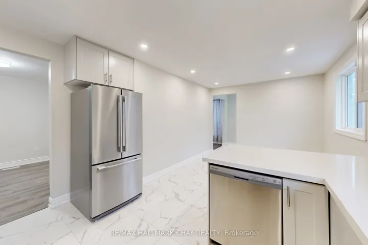 +"PublicRemarks": "Recently updated with vinyl flooring, freshly painted, and smooth ceilings throughout. Spacious foyer leading to an open-concept living and dining area with a large window that fills the space with natural light. Large kitchen featuring backsplash, stainless steel appliances, and an eat-in area. Three good-sized bedrooms. Bathroom includes a skylight, large shower, and double sinks. Backs onto a park for added privacy and green views.Tenant pays 2/3 of utilities."