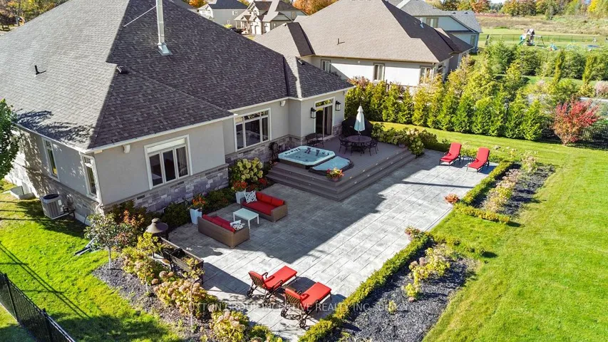 +"PublicRemarks": "This Stunning Custom Builder Stucco/Stone Bungalow is situated on just over a half-acre private lot, offering a country feel while remaining close to city amenities. It boasts numerous upgrades from the builder and additional enhancements by the owners. Apx 5100 total square feet, finished top to bottom. The property features a gorgeous lot with a huge driveway accommodating 12+ cars (triple-wide at the garage). Inside, you'll find a 14' ceiling in the foyer, a front office/bedroom, a second bedroom, a main 4pc and a 2pc. Hardwood flooring extends throughout the main level, complemented by pot lights, O/S trim, crown molding, 9' doors, and transom windows, creating a bright yet cozy atmosphere. The large master at the rear includes a W/I and 5pc Ensuite with heated floors. The stunning great room offers an open concept design with vaulted ceilings and a floor-to-ceiling stone wood fireplace. The gourmet kitchen features a pantry, wine storage/cooler, B/I glass cupboards, an o/s island, and an o/s stainless steel fridge/freezer combo & gas stove. The DR provides a W/O to a 26x15 composite deck, 8-person hot tub, lighted stairs leading to a huge pattern concrete area-$40k and wrought iron fencing around the rear yard. The exterior is enhanced by mature trees and professional landscaping. The main floor also includes a laundry with a side door and a mudroom leading to a fully insulated garage with an epoxy floor and a gas heater. There is a separate staircase to the basement and a rear door. The gorgeous oak staircase leads to a spectacular Fin Basement with upgraded 9' ceilings, ideal for an in-law setup. It includes a huge R/R with a B/I projector and electric screen, a gas fpl, pot lights, and engineered hardwood t/out. There is a second kitchen with top-end appliances, two bedrooms with 4-piece ens (with heated floors), two exercise rooms (one could be a third bedroom), a utility room, a finished office, and a huge cold room."