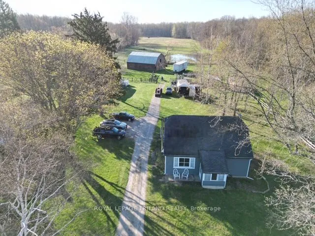 +"PublicRemarks": "This 19.5-acre hobby farm is ideally located on a paved road just minutes from Highway 401, offering both convenience and rural charm. There is a beautiful mix of open paddocks, natural bushland, creating an ideal setting for horse enthusiasts, or anyone craving space, beautiful sunsets and serenity. The property is currently serviced by a well, with municipal water available at the cellar, and also features natural gas and fibre optic connectivity. The 1.5 storey home includes a main floor primary bedroom, a 4-piece bath and an additional 2-piece ensuite, a comfortable living room, and an eat-in kitchen. The furnace was updated in 2012, wood stove and some windows have been replaced. Upstairs, you'll find two additional bedrooms, with the option to remove the unused chimney in one for added space or flexibility. A waterline runs from the house to the 36' x 48' barn and includes a self-draining system to prevent freezing. The sump pump in the house cellar has a back flow valve in place. The barn is well-equipped with a large hay mow, three stalls, hydro, and water, making it ideal for hobby farming or small livestock operations. Close to amenities, grocery, hardware store, Tim Hortons, medical centre, dentist, library and arena."