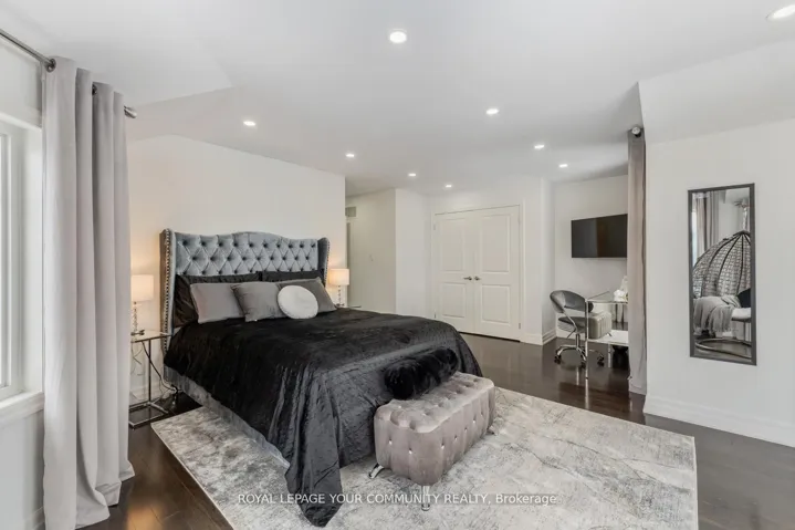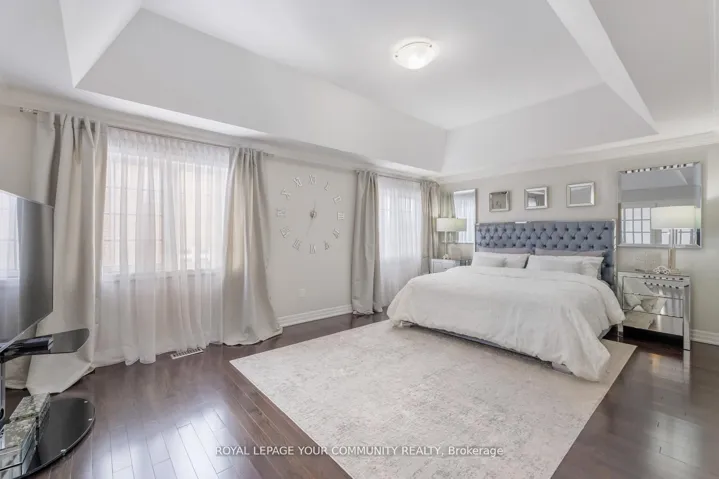 +"PublicRemarks": "Nestled in the heart of King City, this home exemplifies quality living, offering both convenience and safety in a vibrant community. Positioned on a spacious corner lot and overlooking a serene park, this elegant residence spans over 3,700 square feet above grade,designed to accommodate the needs of modern families with expansive living spaces.Upon entering, you'll be welcomed by the grandeur of high ceilings and an open layout, highlighting exquisite finishes such as hardwood floors, large custom windows with coverings, crown moldings, and contemporary lighting throughout.The main floor features a generous living room with park views, providing a sense of privacy, and a formal dining room enhanced with coffered ceilings and elegant moldings. A private office with French doors and intricate ceiling details offers a refined work environment. The two-story family room, complete with a cozy fireplace, flows seamlessly into the kitchen and breakfast area. The chefs kitchen is a standout, boasting abundant cabinetry, granite countertops, top-of-the-line stainless steel appliances, a water filtration system, and a garburator. The breakfast area includes additional cabinetry with a built-in desk, and opens onto a beautifully landscaped French patio with a gas hook-up for a BBQ and a lush garden. The laundry room, equipped with high-end appliances and built-in closet storage, offers convenient access to the garage.Upstairs, the second floor features four spacious bedrooms. The primary suite is a private retreat,featuring high ceilings, a Juliet balcony, a custom walk-in closet, and a luxurious five-piece ensuite. Two additional bedrooms are fitted with double closets and large windows, sharing a five-piece semi-ensuite. The final bedroom offers a private four-piece ensuite, walk-in closet, and cathedral ceiling.The basement offers high ceilings, a cold room, and the potential for a walk-up exit, should your familys needs require."