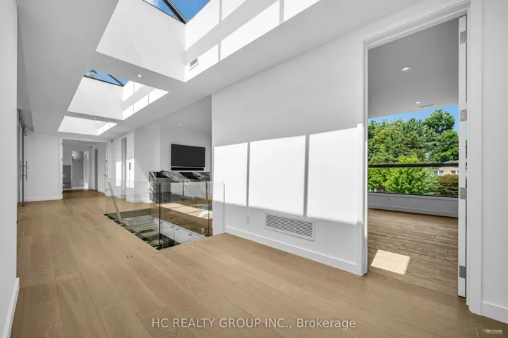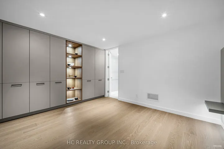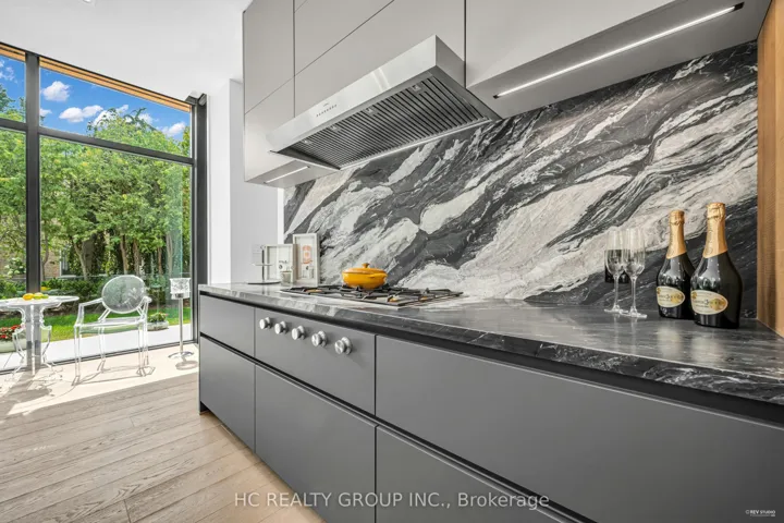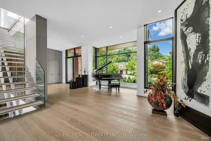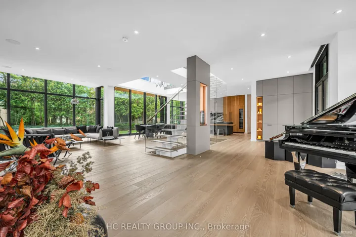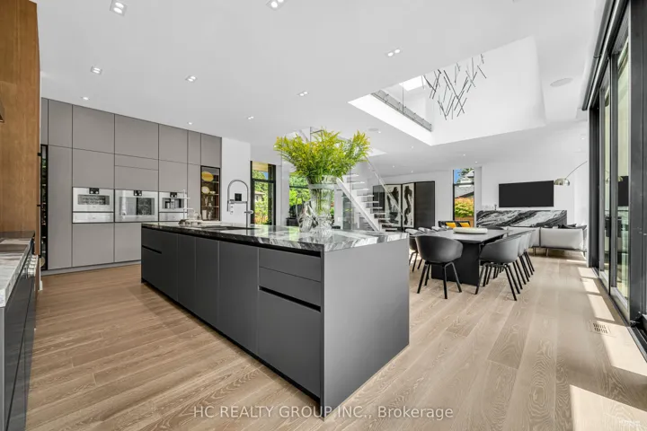 +"PublicRemarks": "An extraordinary modern estate of distinction, privately set on a tranquil cul-de-sac on a rare 107.34 foot frontage lot, showcasing a refined interplay of glass, stone, and light. Designed by award-winning architect David Small, the residence features polished Ontario white marble, European aluminum-clad wood windows, and professionally landscaped grounds with mature evergreens, integrated outdoor elements, and a full irrigation system. A generous three-car garage with extra-high ceilings accommodates vehicle lifts. The main level offers a guest bedroom and a gourmet kitchen with top-tier appliances and a walk-in pantry, complemented by radiant heated floors, wide-plank European white oak, floor-to-ceiling windows, and a striking 23-foot dining room ceiling with sculptural chandelier. Floating stairs with sleek glass railings elegantly connect all levels. The upper level presents a lounge, office, and four ensuite bedrooms, including a luxurious primary retreat with a spa-inspired ensuite featuring heated floors, dual custom marble-lite floating sinks, and an expansive dressing room with premium custom cabinetry and integrated LED lighting. The lower level is designed for elevated living, featuring a recreation room, climate-controlled wine cellar, nanny suite, and fitness room. Over $500,000 in premium custom German cabinetry throughout the home unifies the interiors with exceptional craftsmanship, modern elegance, and refined luxury."