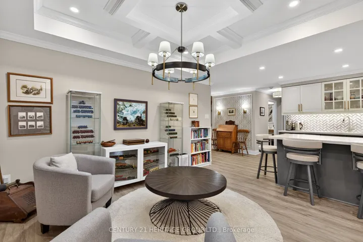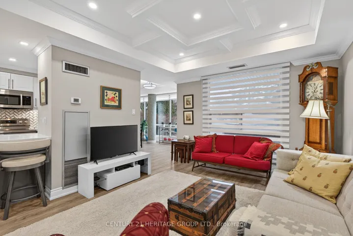 +"PublicRemarks": "Beautifully & fully renovated throughout with rare outdoor private patio to sit outside, enjoy your garden & have the best of both worlds. This is the biggest unit in the complex at 1445 sq ' w/ luxurious & high end finishes through-out. The open concept style has 9 ' ceilings, crown moulding, coffered & tray ceilings & a fabulous kitchen featuring a huge island, pantry, easy slide drawers w/ brass accents & coriander countertop. You'll find upgraded lighting t-out, tasteful decor & exceptionally remodelled bathrooms. The primary bedroom has a large window, w-in closet & stunning ensuite. The second has a custom built-in Murphy bed w/ side shelves & easily folds away to convert to an office. These quality renovations really shine & it is a completely turn key sun-lit unit. Two fireplaces are nicely placed in Primary & living/dining room area & huge windows across the back look out to your own fully private & nicely landscaped garden patio. Reno's approx 5 years, & all new flooring & paint in 2024. Condo fee covers all heat, hydro, cable & everything except taxes. 2 Parking spaces, a great outdoor area to sit & relax & Recreational facilities that were recently refreshed w/ a very attractive pool area, gym & change rooms. Facilities offer pilates, swimming classes, Zuma, aquafit & yoga. Just a great building all around."