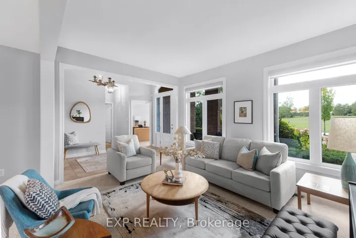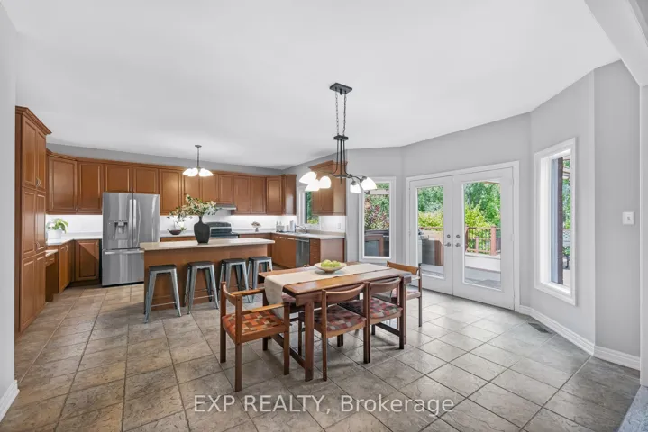 +"PublicRemarks": "Situated on a professionally landscaped and exceptionally private 1.75 acre lot backing onto a serene woodland setting, this remarkable residence offers a rare combination of sophistication, comfort, and natural beauty. Mature trees and lush greenery create a peaceful backdrop, providing both privacy and a true sense of retreat.The main floor is bathed in natural light, with oversized windows and French doors that enhance the home's bright, airy atmosphere. A thoughtfully designed floor plan offers multiple, well proportioned living spaces, perfectly suited for elegant entertaining, family gatherings, or relaxed everyday living. The seamless connection between indoor and outdoor spaces allows the surrounding landscape to become an extension of the home itself. Step outside to a custom Trex deck featuring refined slate inlays and multiple seating areas, ideal for hosting, dining, or simply enjoying the tranquil views of the wooded setting. The outdoor space is designed for both beauty and functionality, offering privacy without sacrificing openness. Inside, the home showcases sun filled interiors, soaring ceiling heights, and a refined flow that emphasizes space and comfort throughout. Additional premium features include a triple car garage, an expansive double driveway accommodating up to eight vehicles, a Generac backup power system for peace of mind, an inground lawn sprinkler system, and a selection of highend finishes and systems typically reserved for the finest estate homes. This property delivers an exceptional lifestyle defined by quality, privacy, and timeless appeal."